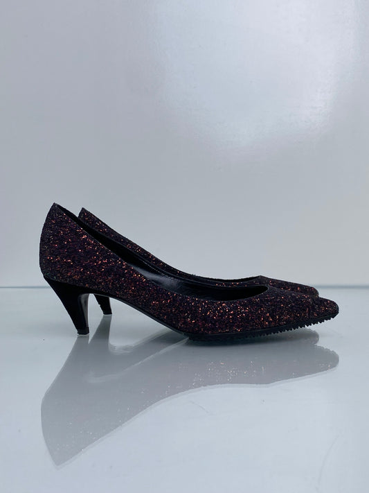 Saint Laurent Purple Glitter Kitten Heels, 36.5