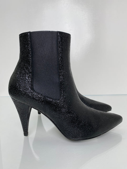 Saint Laurent Black Crinkle Leather Boots, 38.5