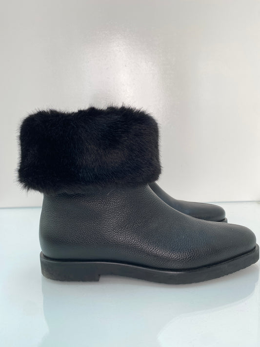 Saint Laurent Black Crinkle Leather Boots, 38.5