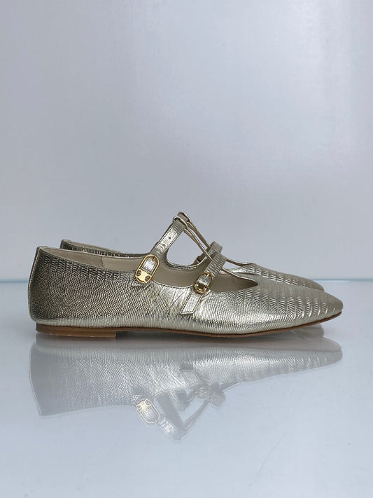 Celine Metallic Gold Embossed Ballet Flats, 38.5
