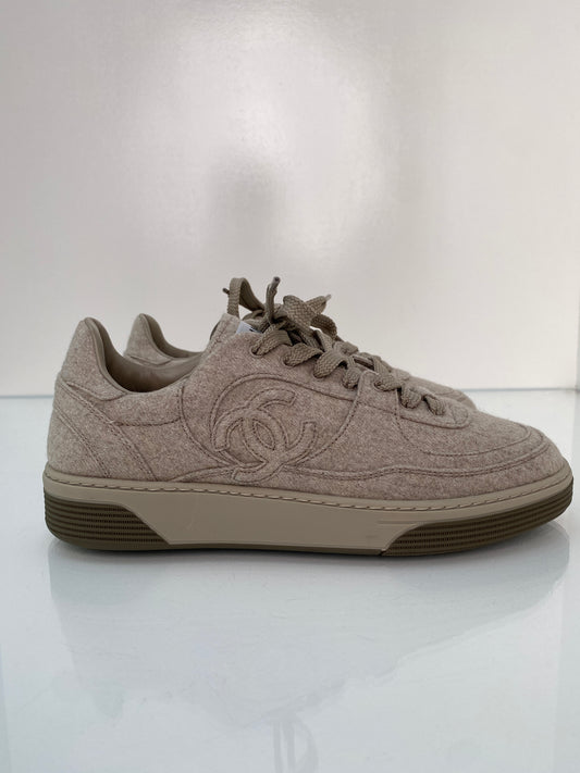 Chanel Brown / Grey Wool Interlocking CC Sneakers, 39