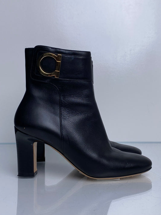 Hermes Brown Leather Buckle Heeled Boots, 36