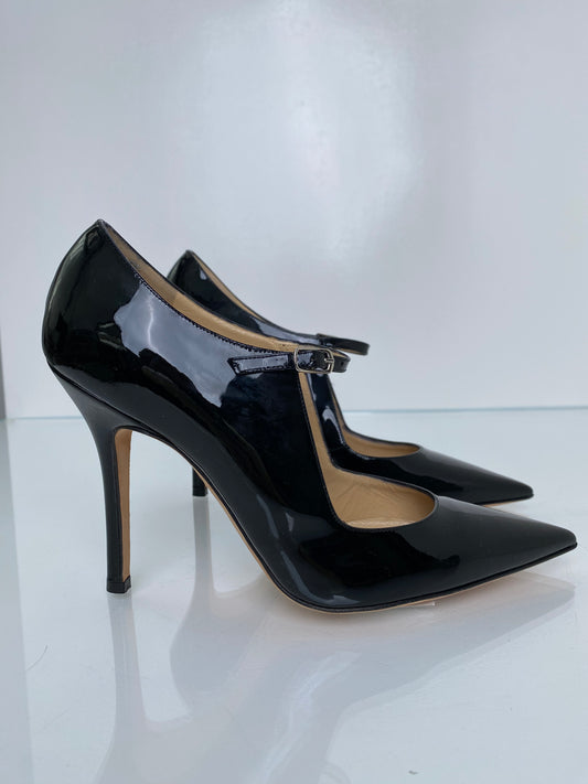 Manolo Blahnik Black Patent Pointed Toe Heels, 38.5