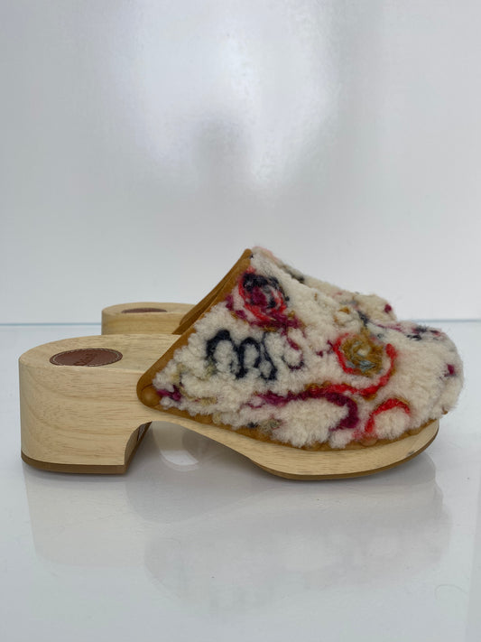 Chloe Cream & Multicolor Shearling Clogs, 37