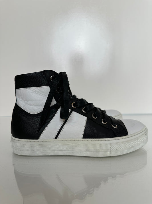 Amiri Sunset Black & White High Top Leather Sneakers, 38
