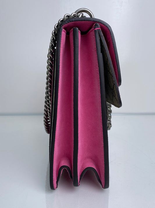 Gucci Crystal Star, Moon, Heart Pink Monogram Dionysus Handbag