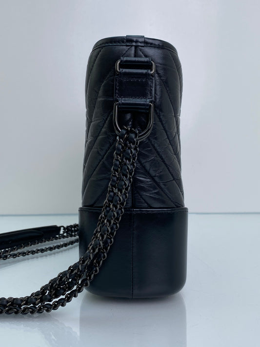 Chanel Black On Black Crinkled Calfskin Gabrielle Bag BHW #28