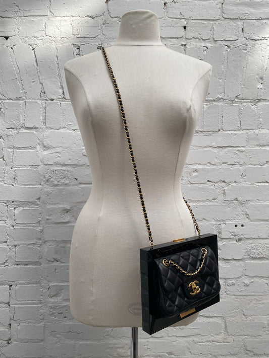 Chanel Black Lambskin & Plexiglass "Collection Privee" 2014 Picture Frame Minaudière Bag GHW