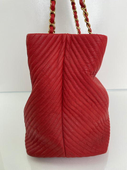 Chanel Red Chevron Lambskin Leather Shoulder Tote GHW