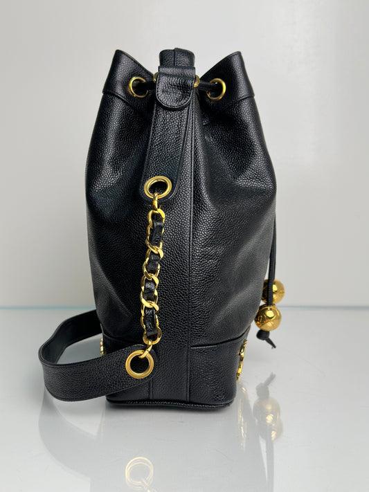 Chanel Vintage Black Caviar Bucket Bag w/ Gold Hardware
