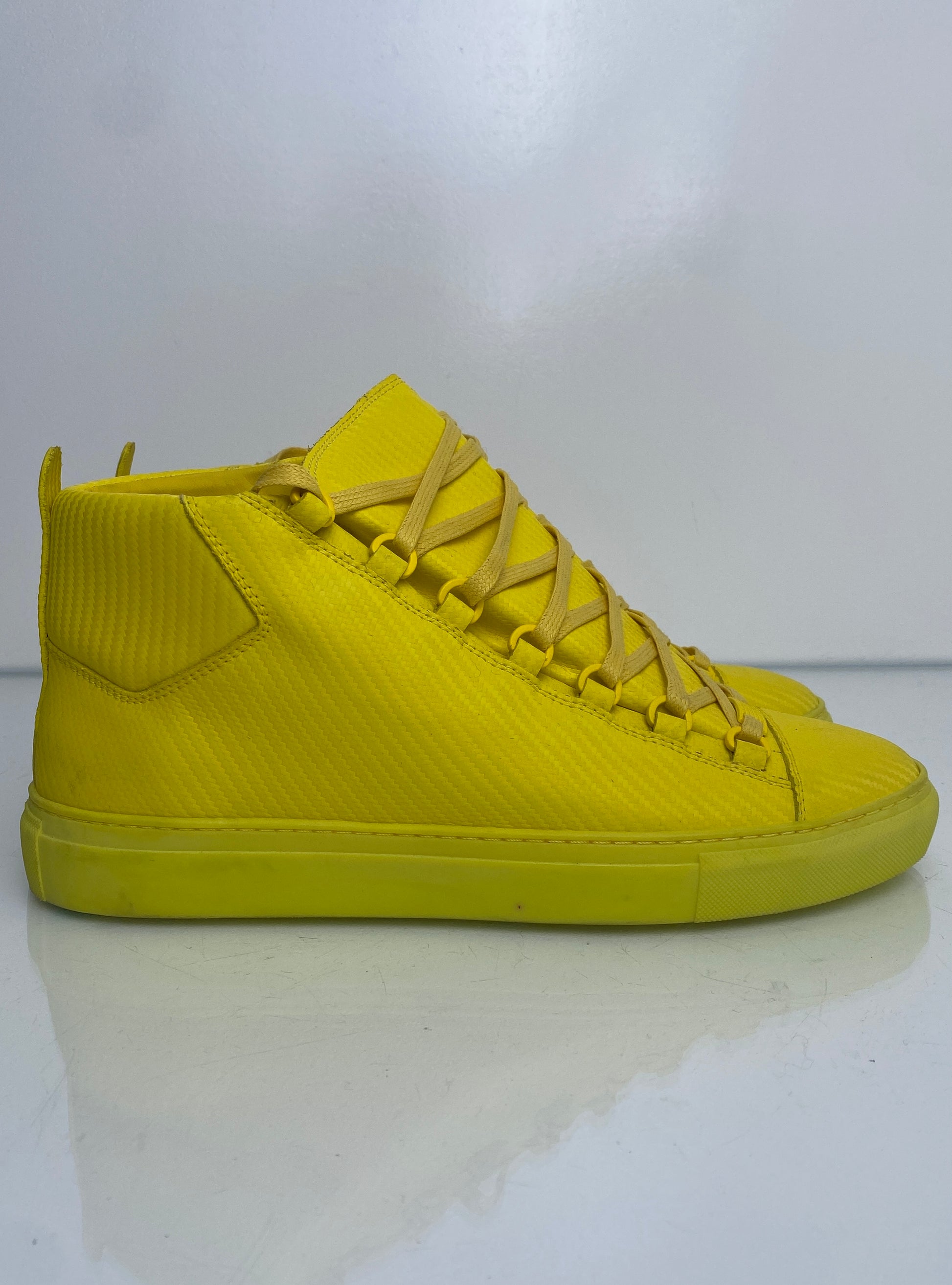 Balenciaga Yellow Arena Leather High-Top Sneakers, 42