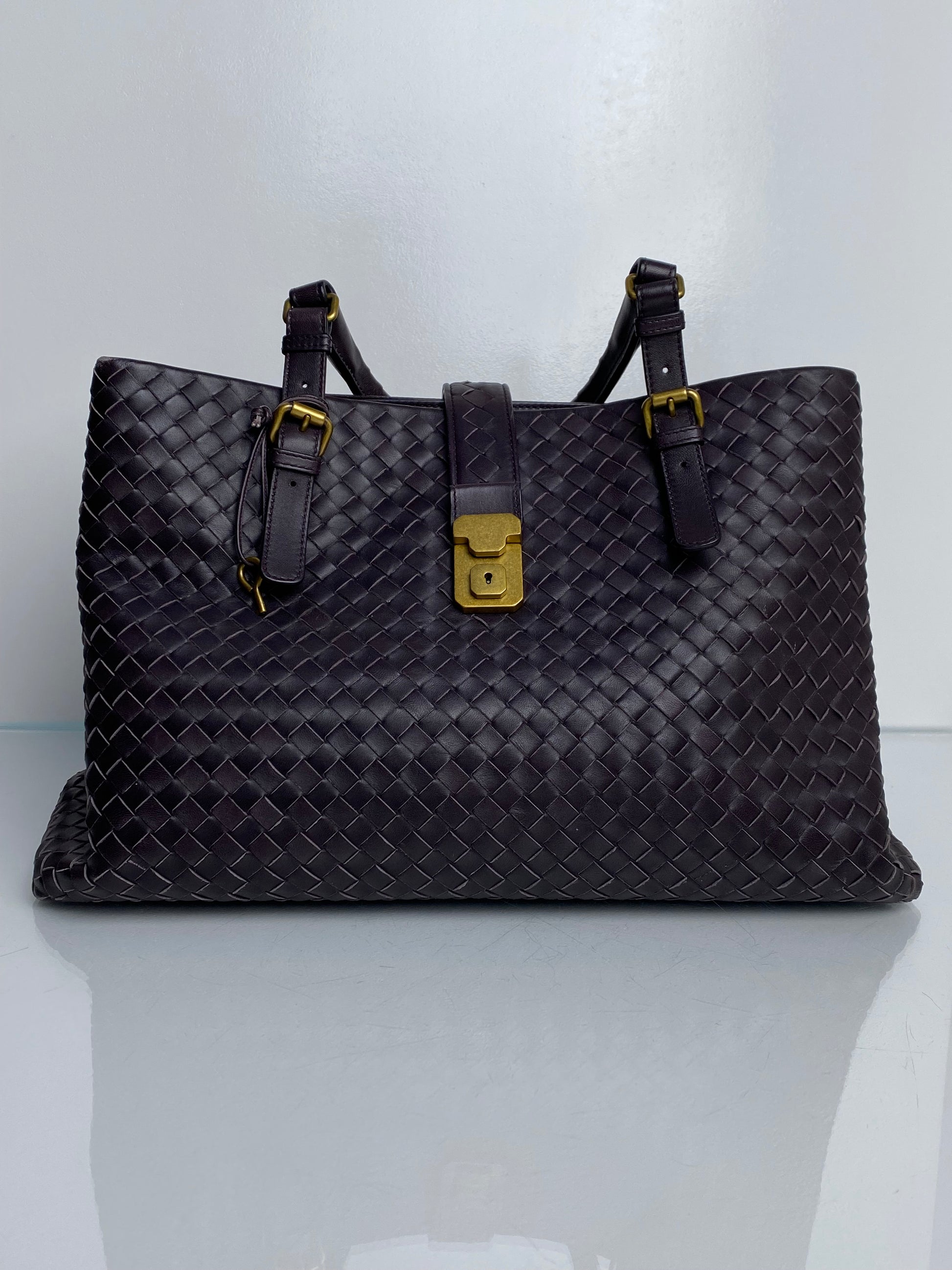 Bottega Veneta Dark Eggplant/Brown Intrecciato Roma Tote Bag GHW