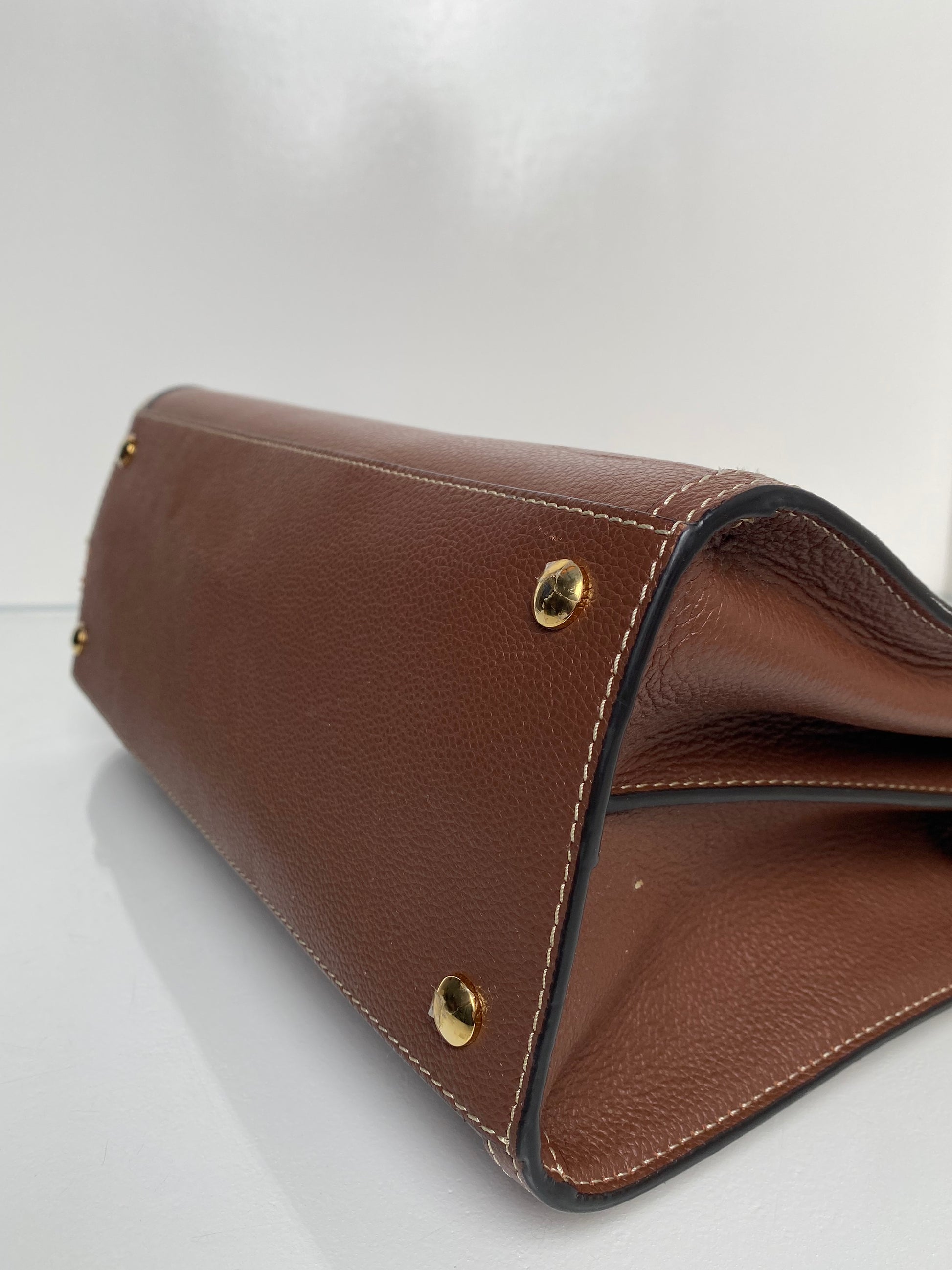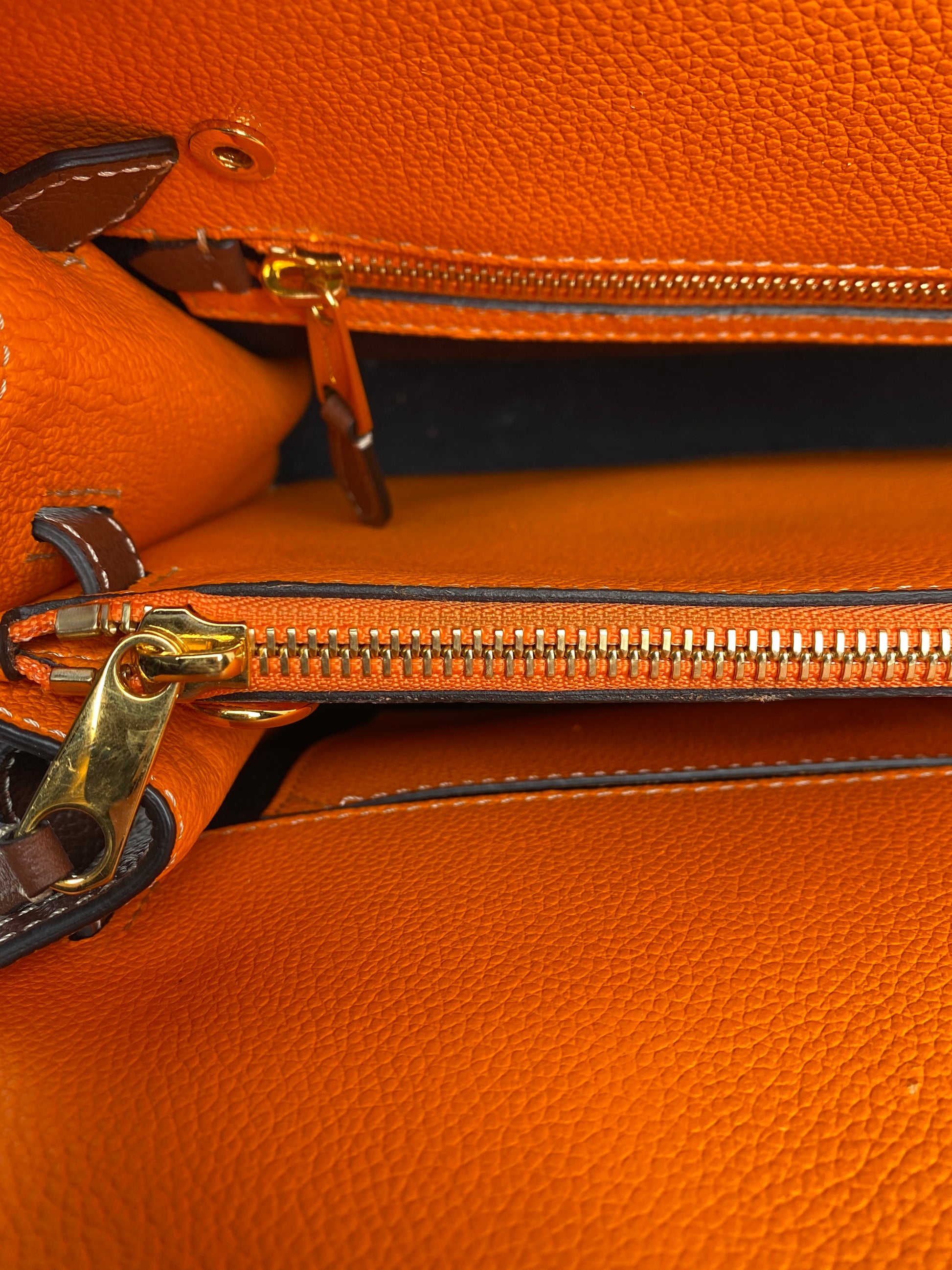 Burberry Brown & Orange Contrast Stitch Tote Bag GHW