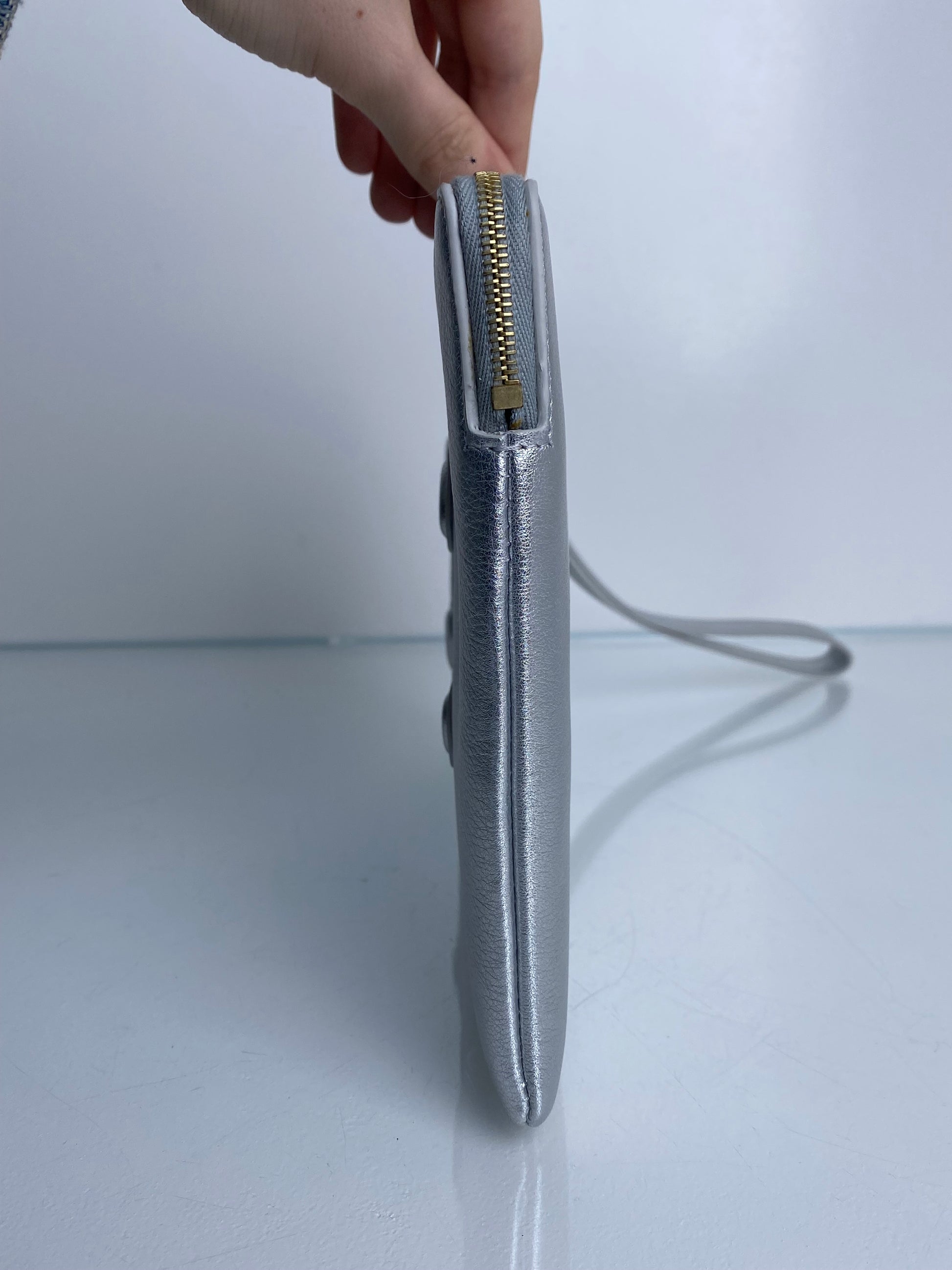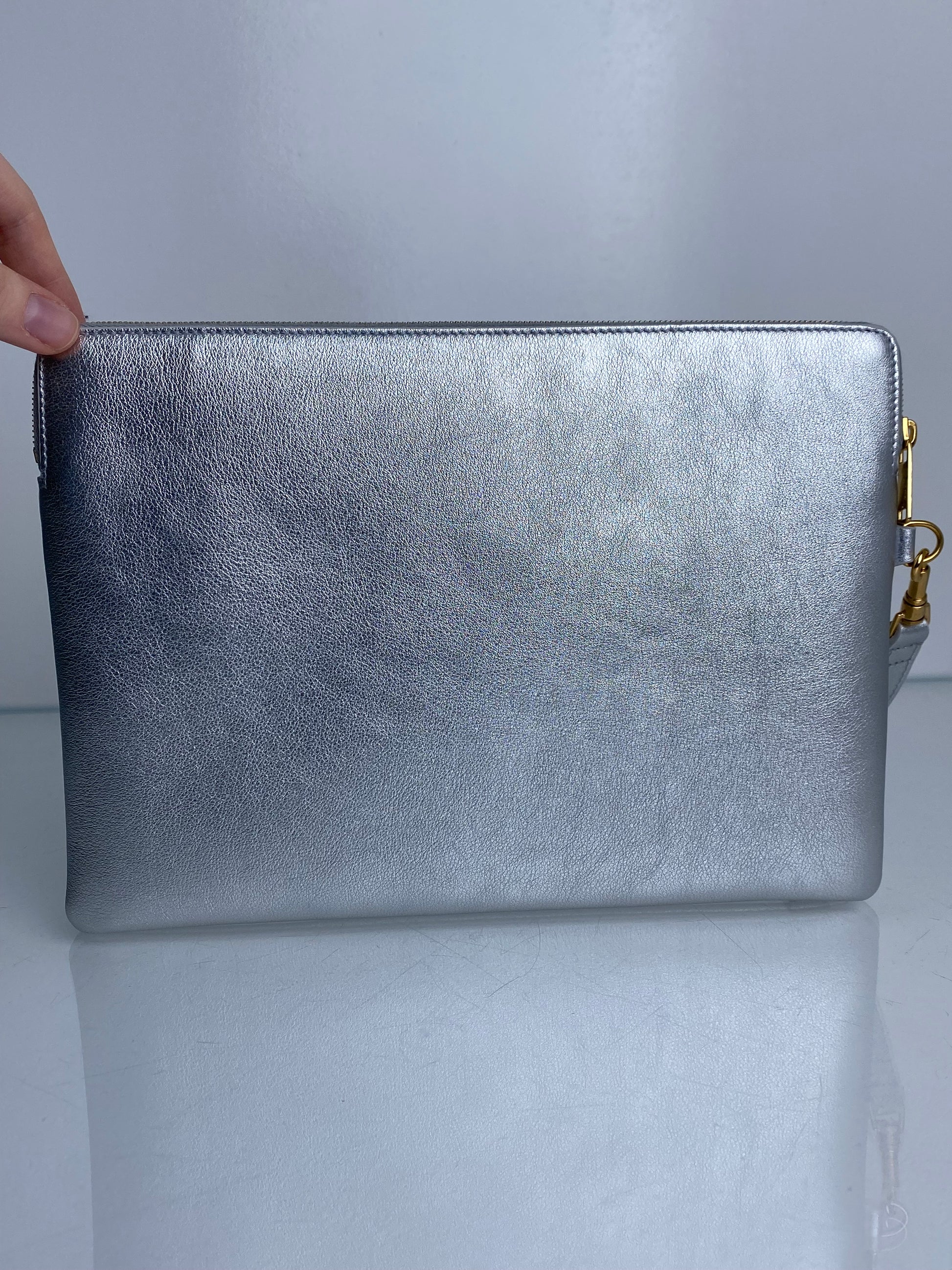 Celine Cuir Triomphe Small Pouch Metallic Silver