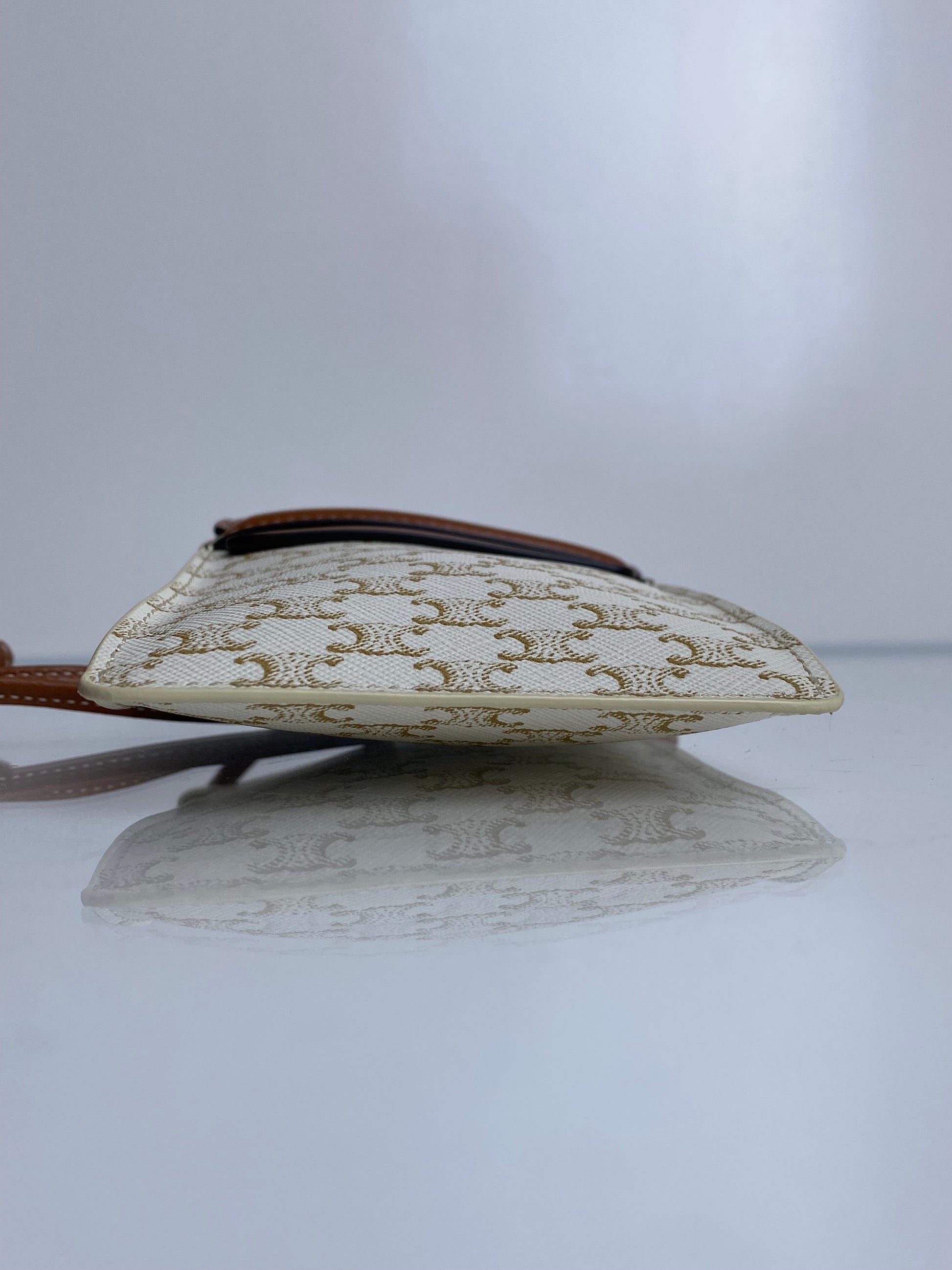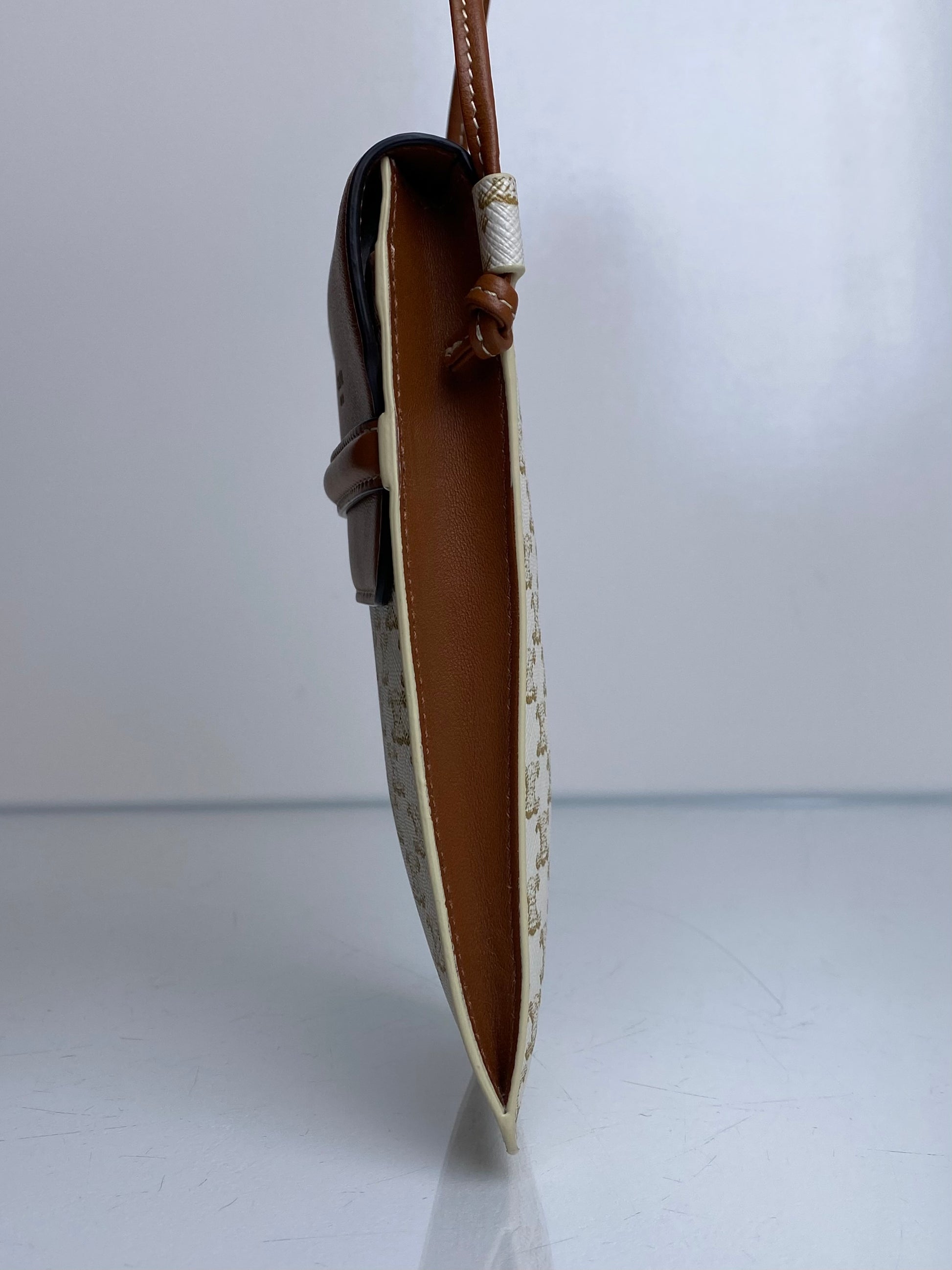 Celine White & Tan Triomphe Phone Holder Crossbody Bag