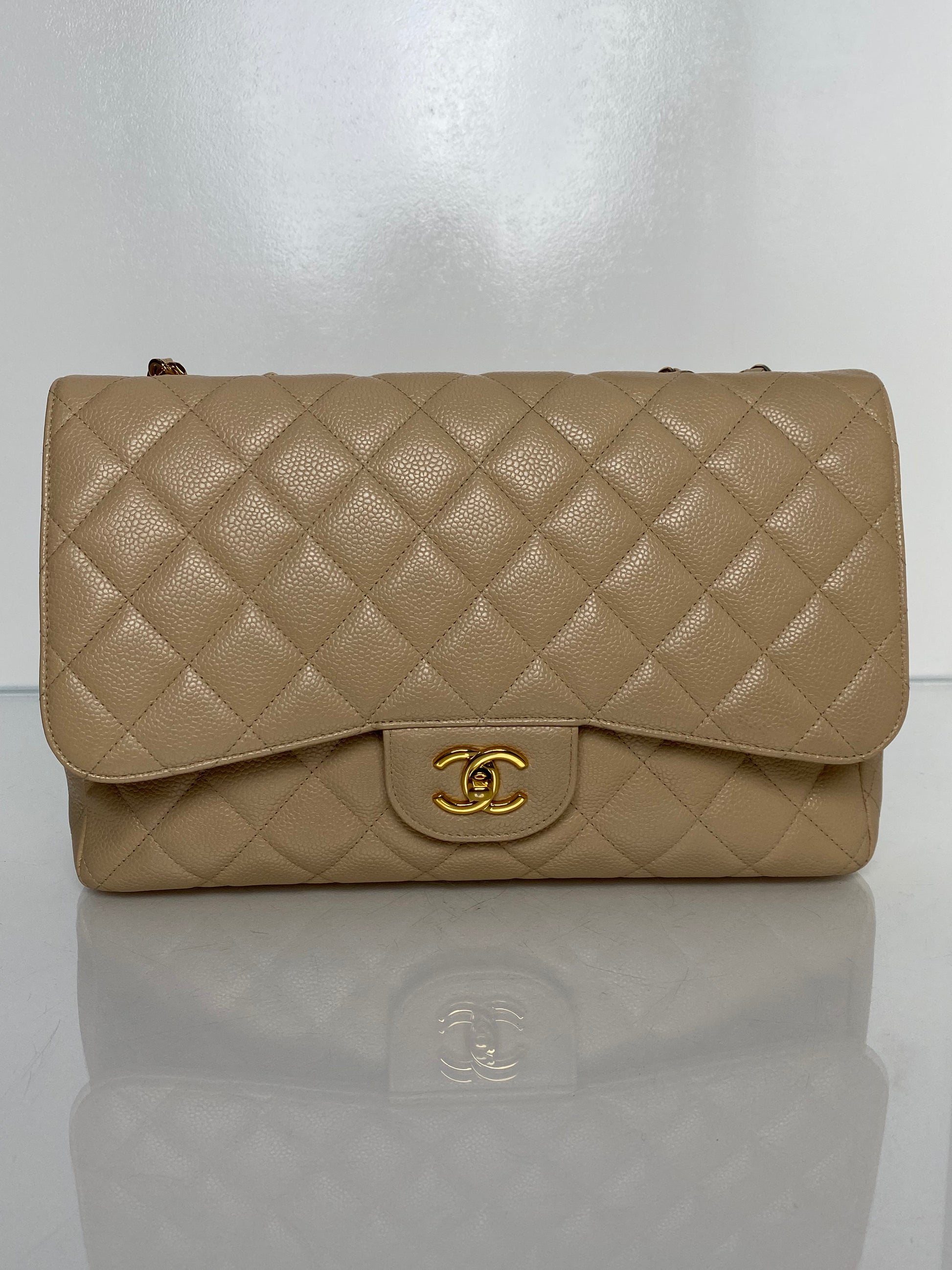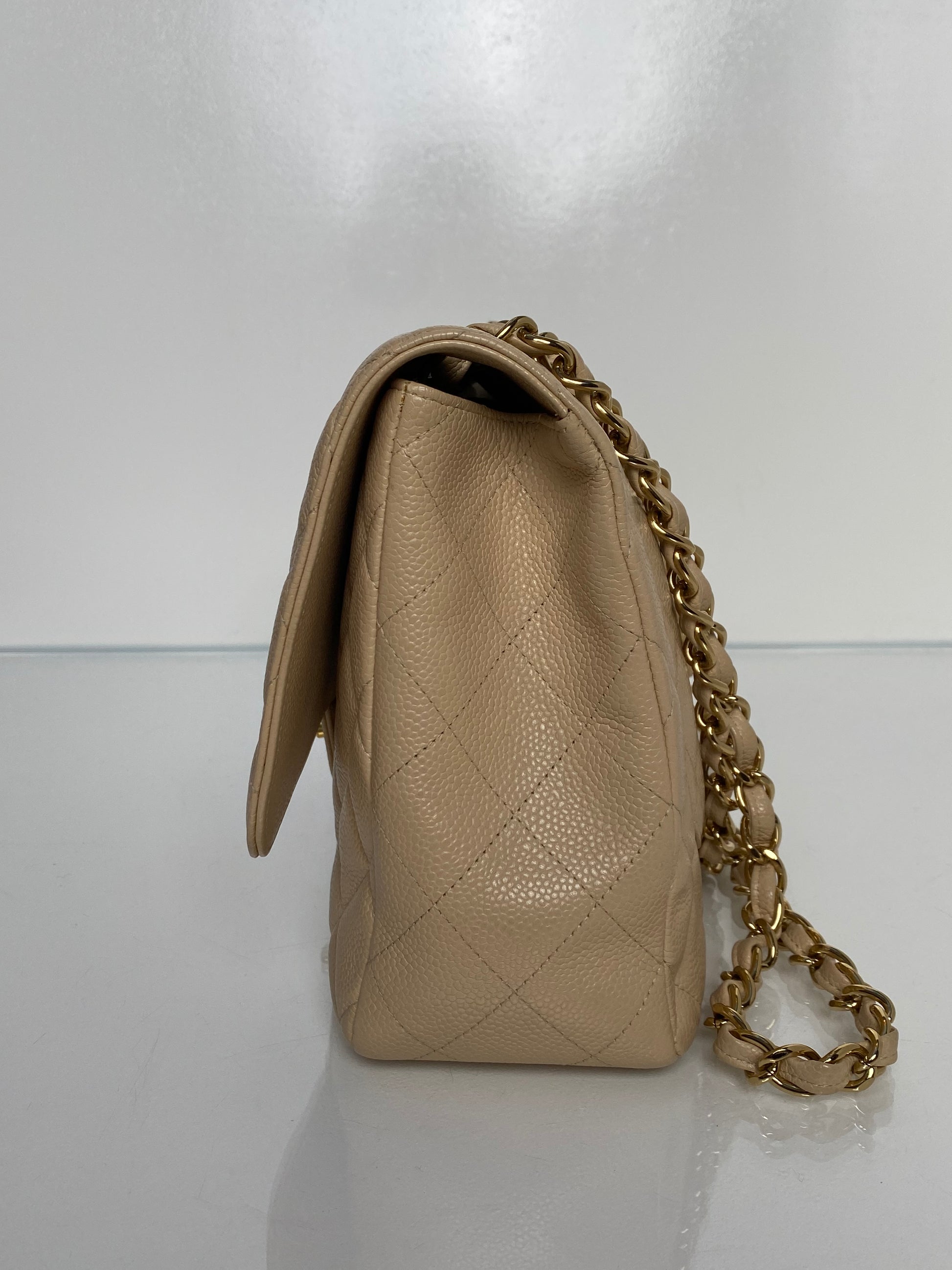 Chanel Beige Caviar Single Flap Bag GHW #13