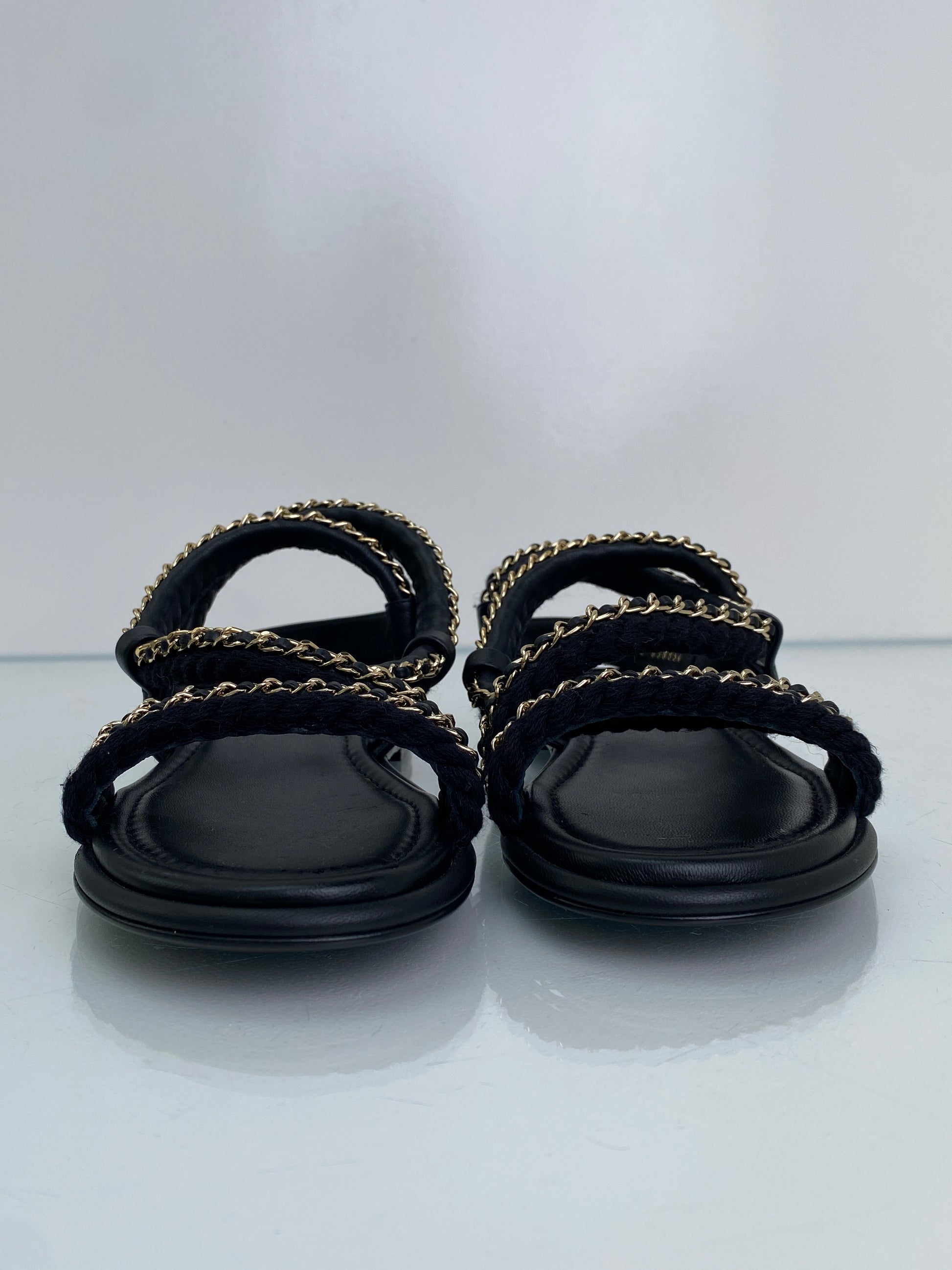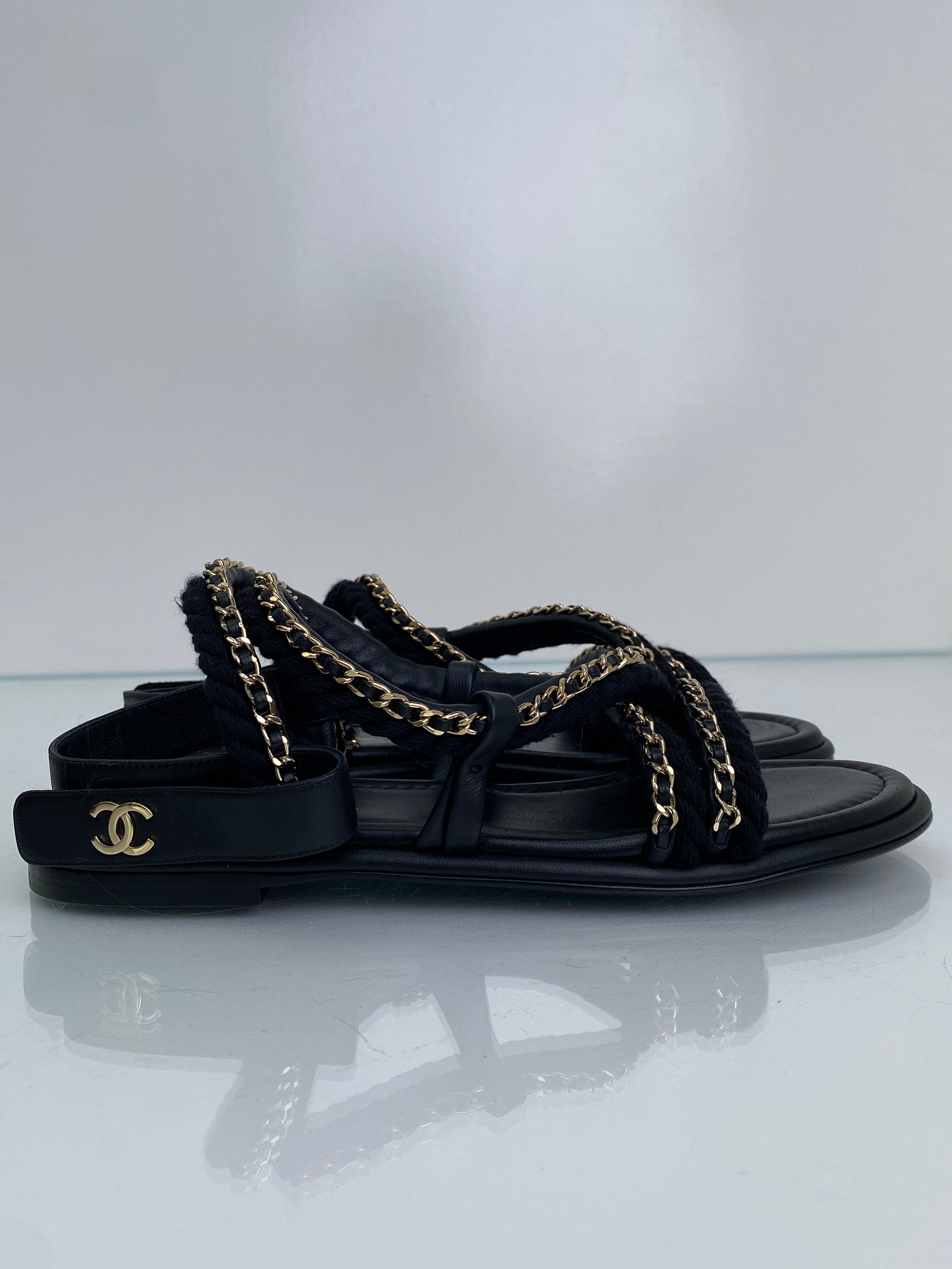 Chanel Black CC Chain Cord Sandals, 39