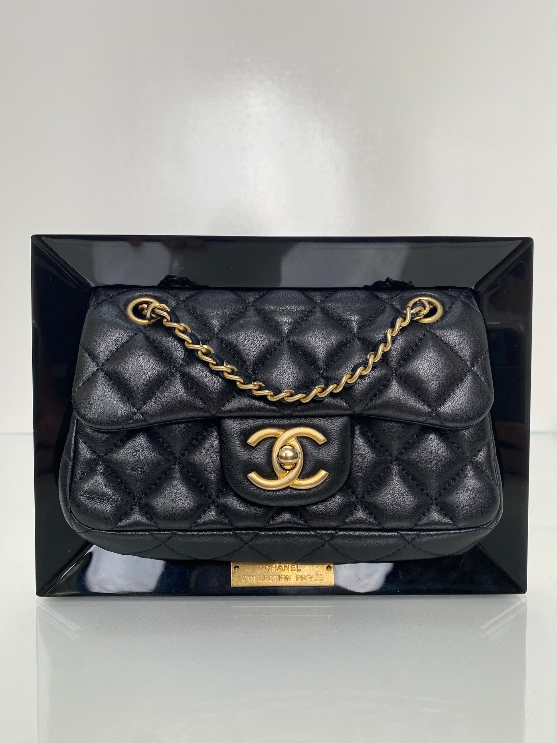 Chanel Black Lambskin 2014 Lambskin & Plexiglass "Collection Privee" Picture Frame Minaudière Bag GHW