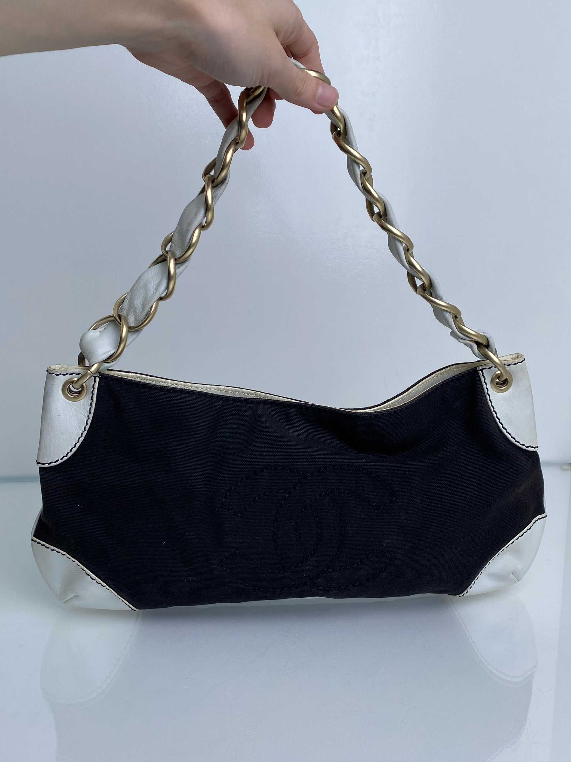 Chanel Black Olsen Canvas Shoulder Bag GHW