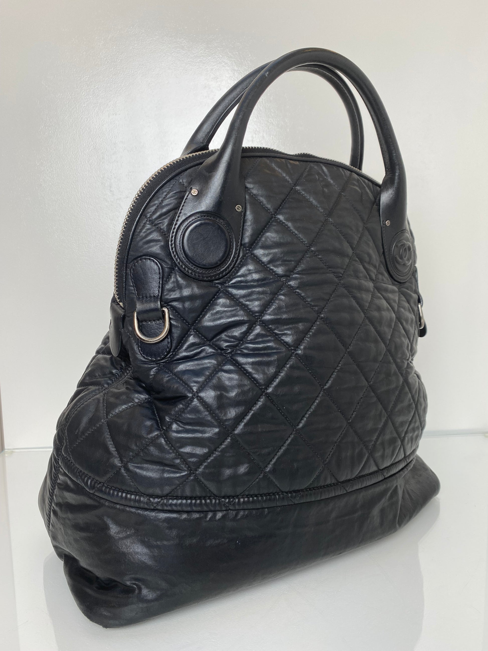 Chanel Black Quilted Vertical Sport Weekender Bag SHW