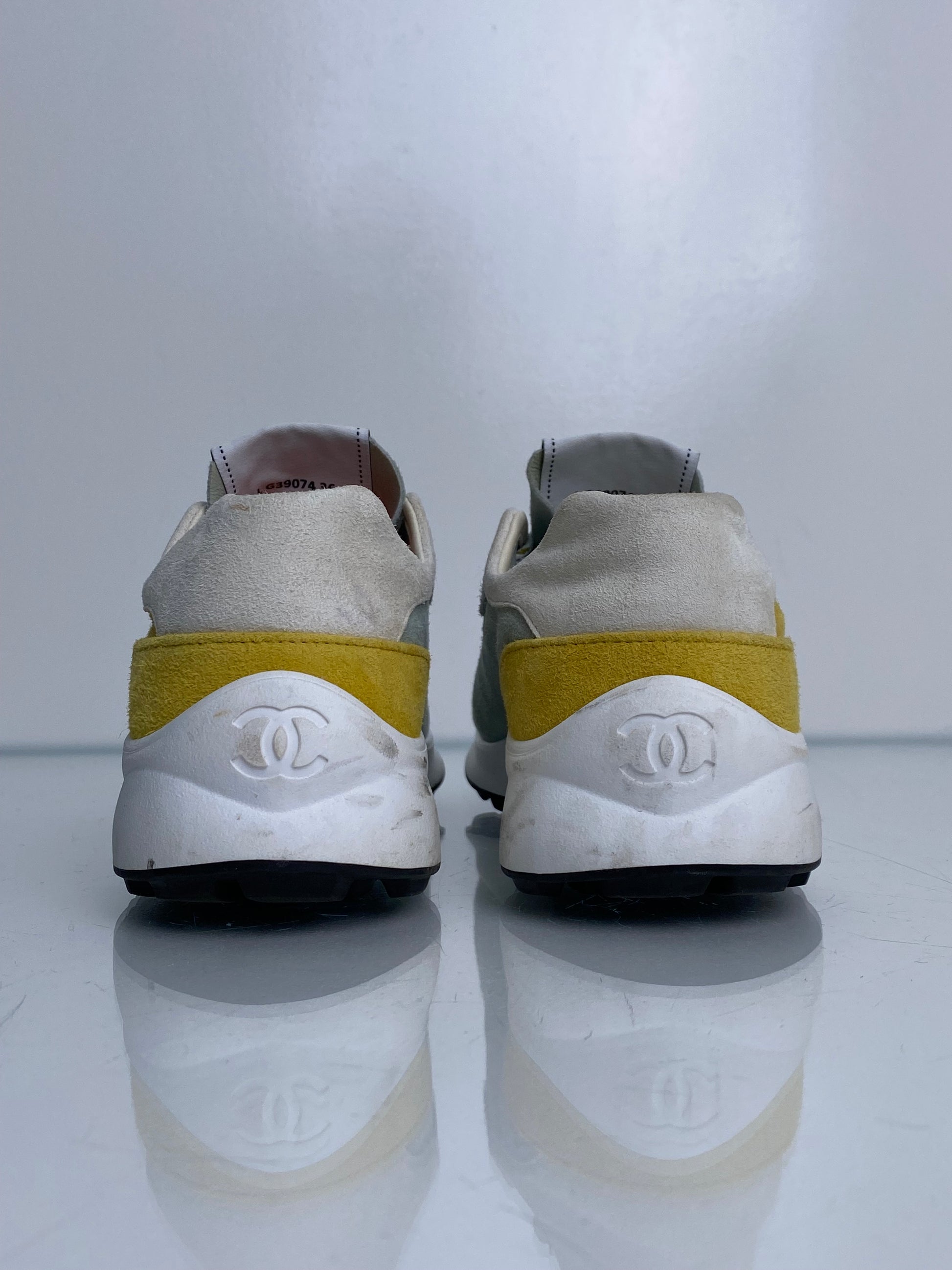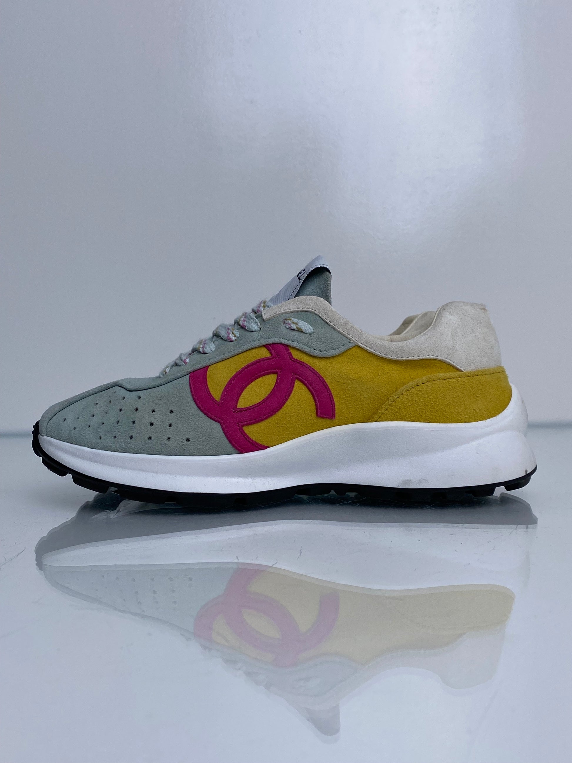 Chanel Blue, Yellow, & Pink Suede CC Sneakers, 36