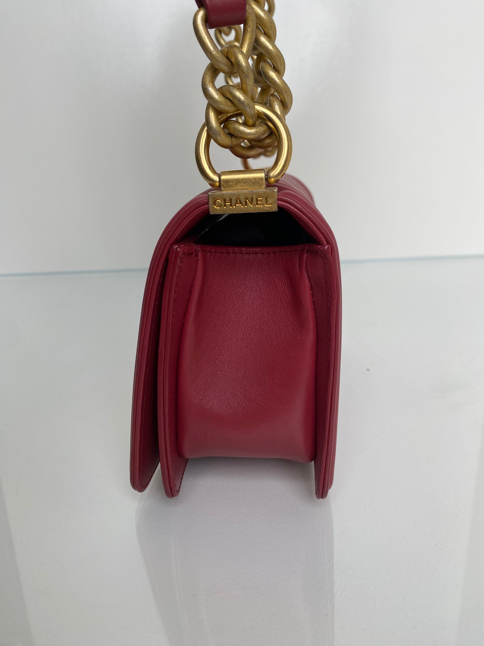 Chanel Boy Bag Red Lambskin Chevron Small GHW