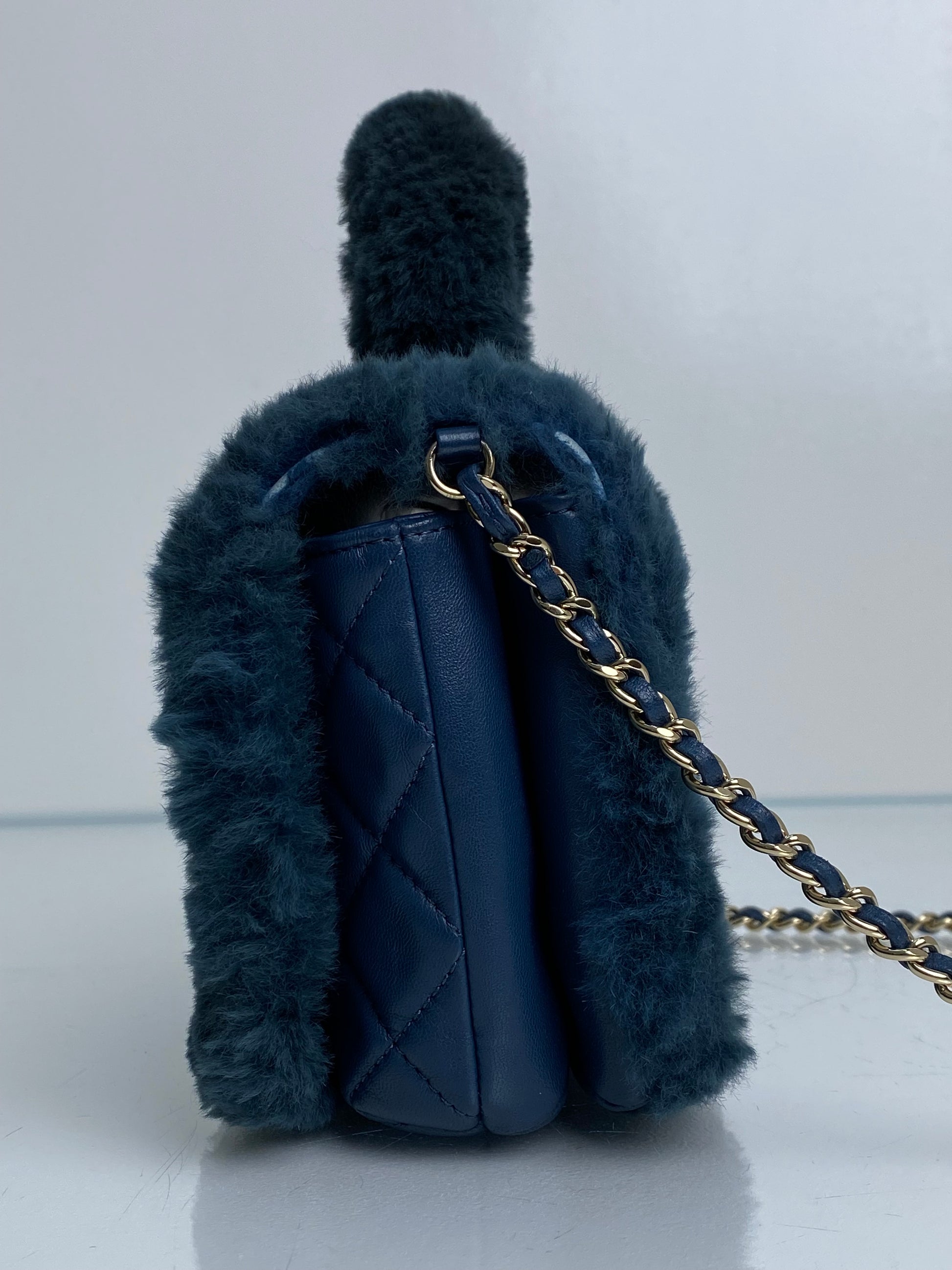 Chanel Cosmopolite Top Handle Fur Bag Dark Teal LGHW