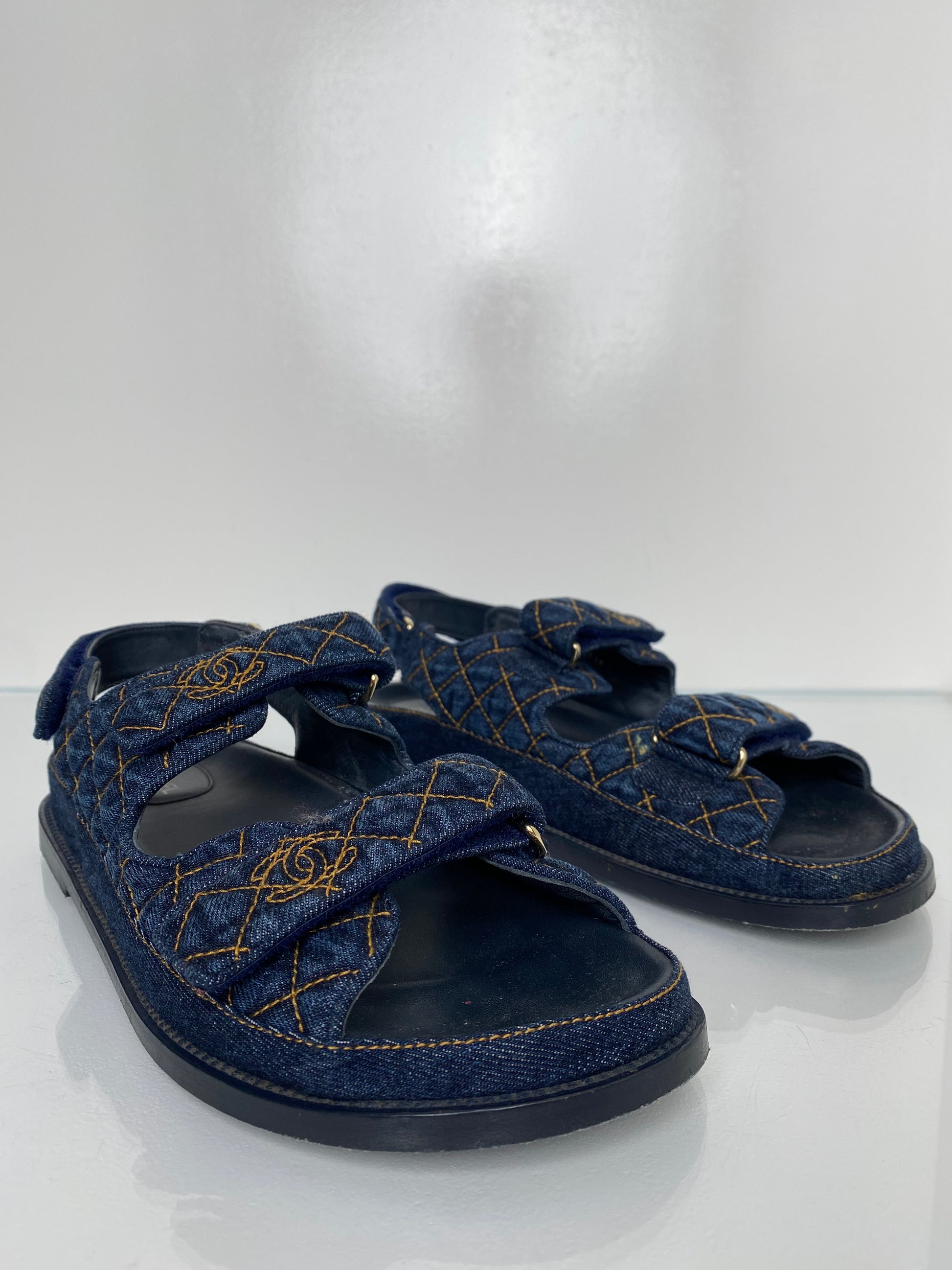 Chanel Denim Quilted CC Logo Dad Sandals, 41.5