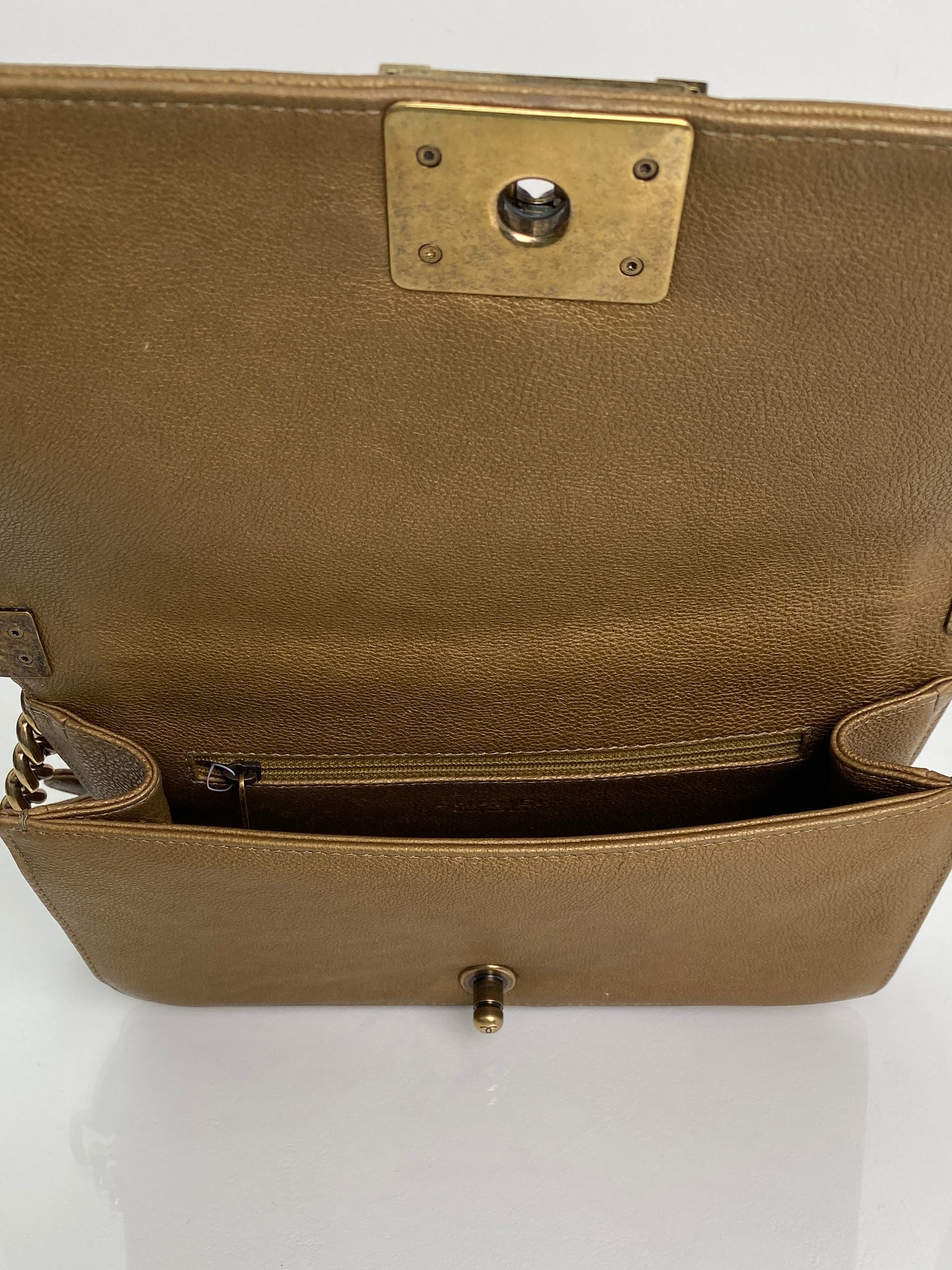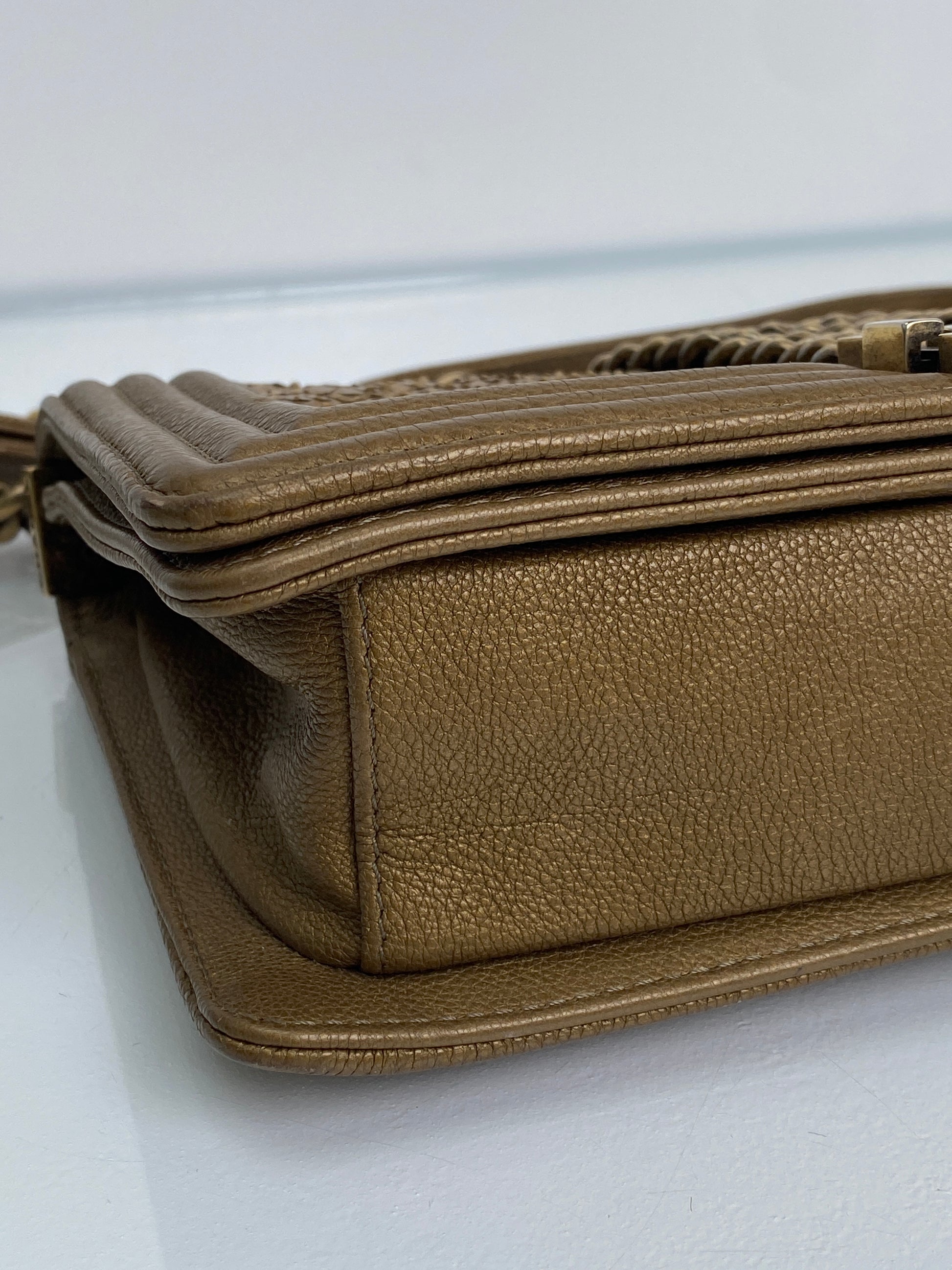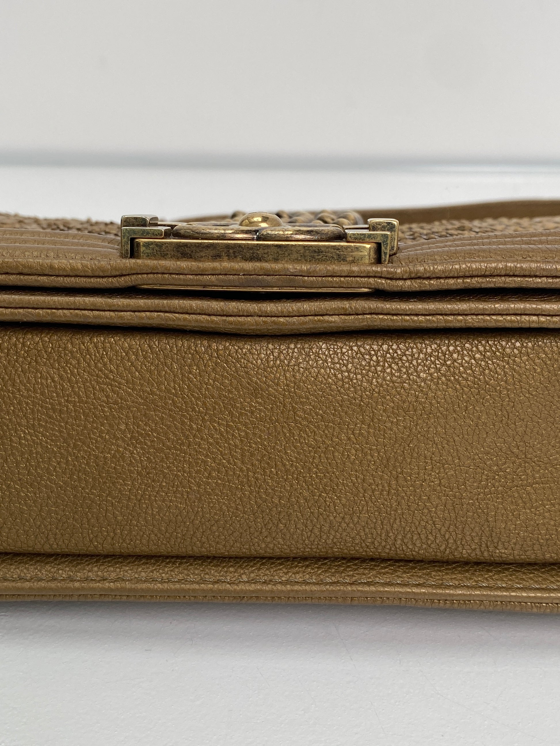 Chanel Gold Snakeskin Embossed Small Chain Boy Flap Bag GHW
