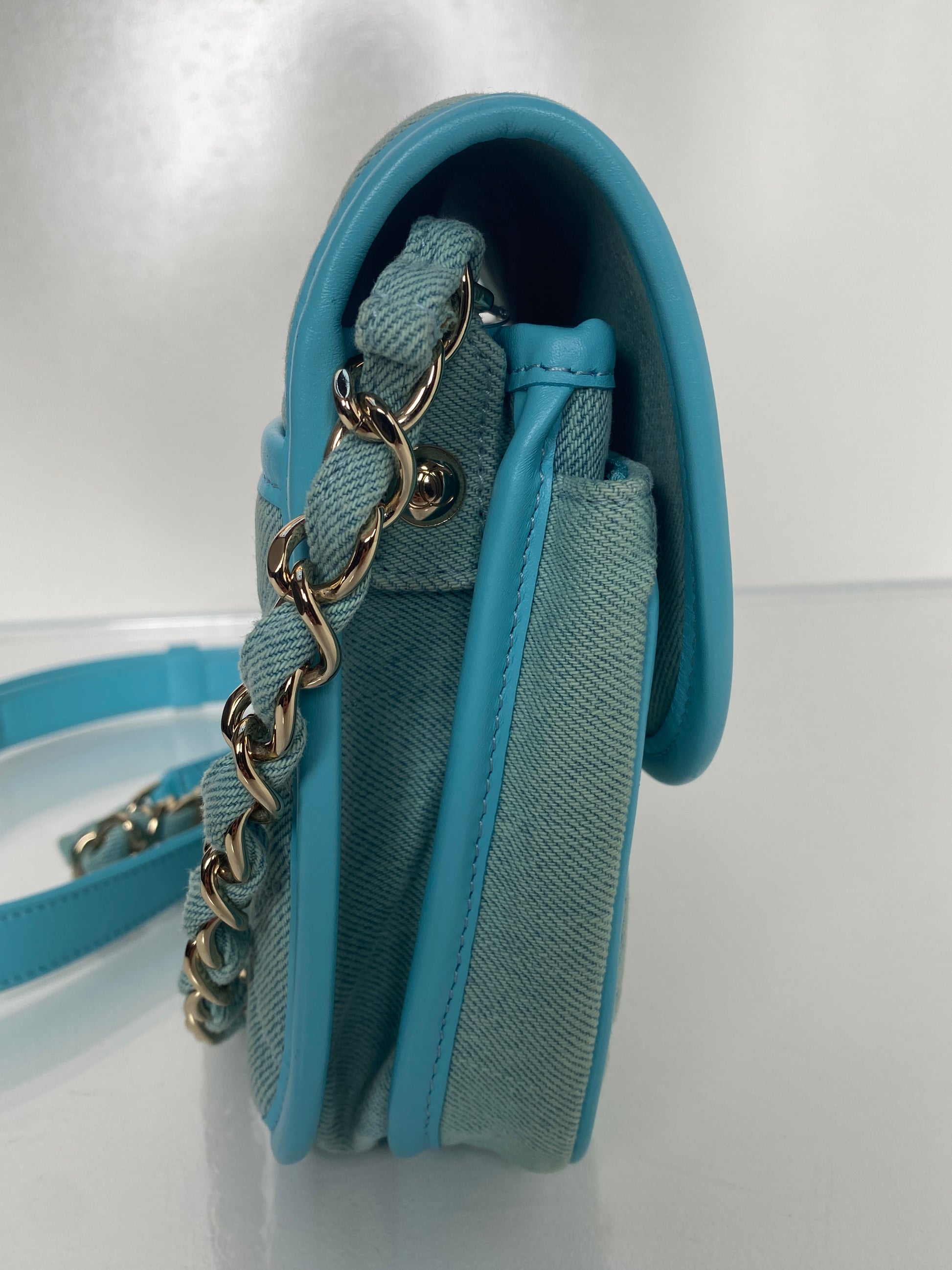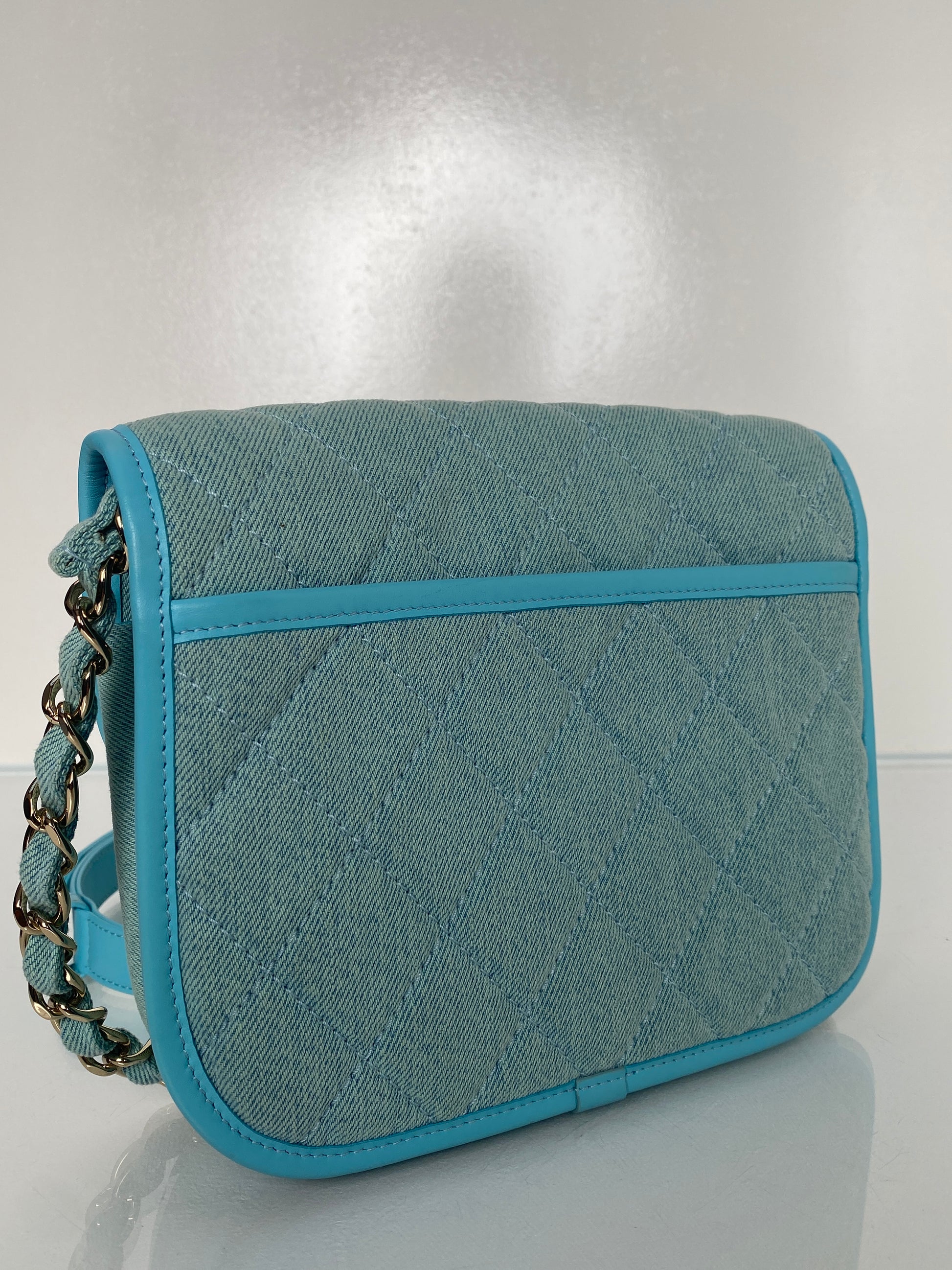 Chanel Mini CC Quilted Denim Messenger Flap Bag GHW