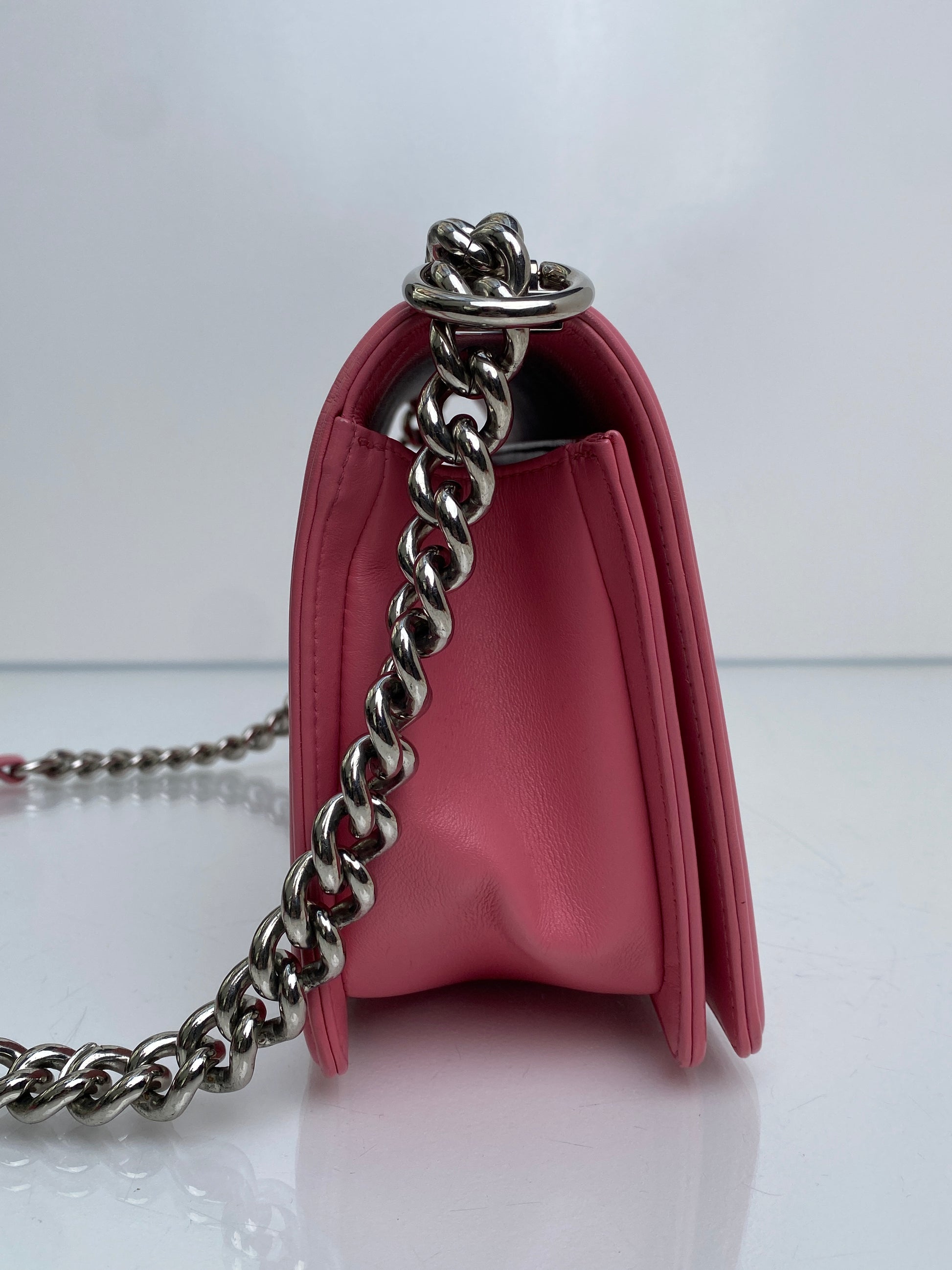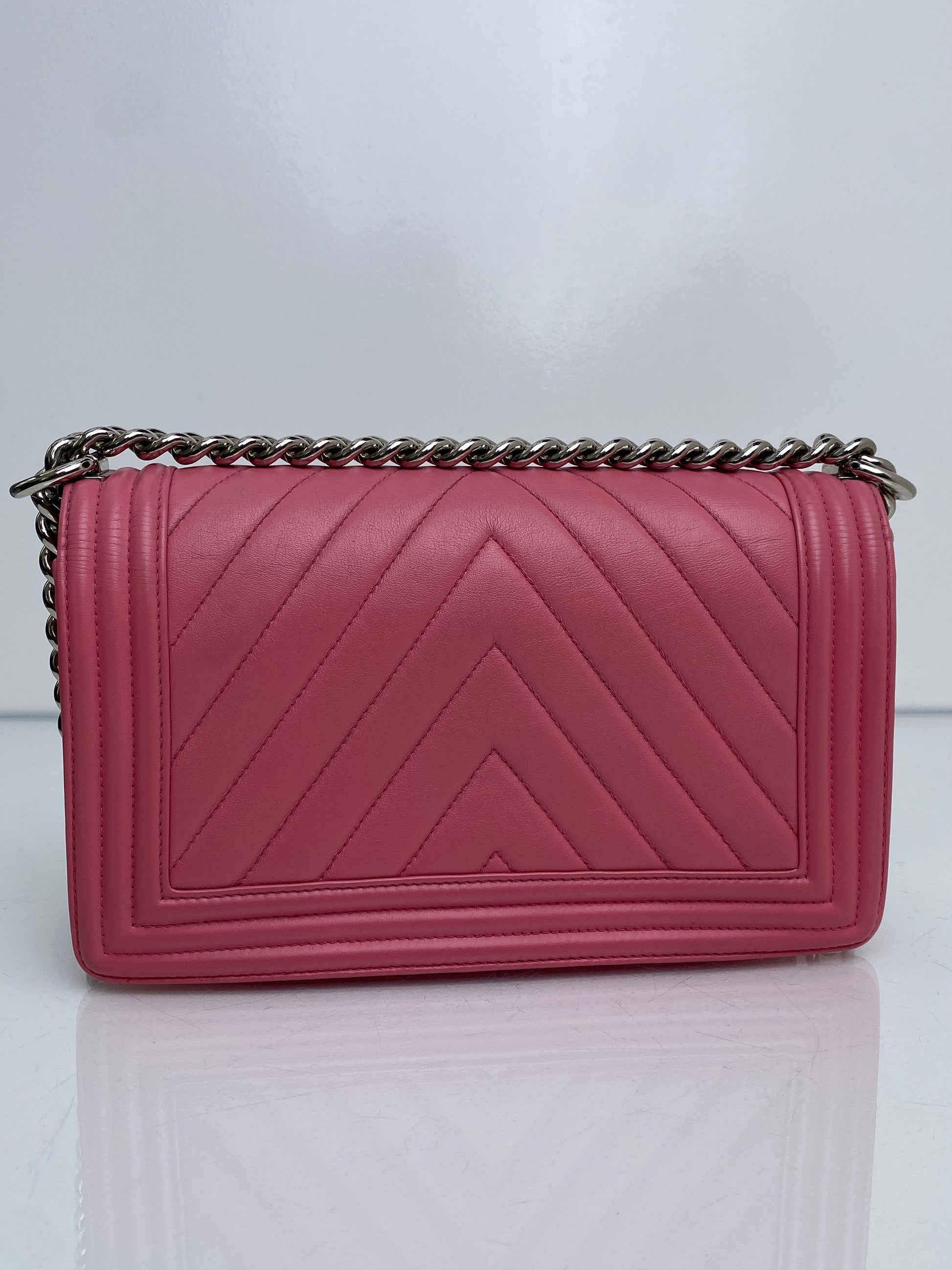 Chanel Pink Medium Chevron Boy Bag SHW #22