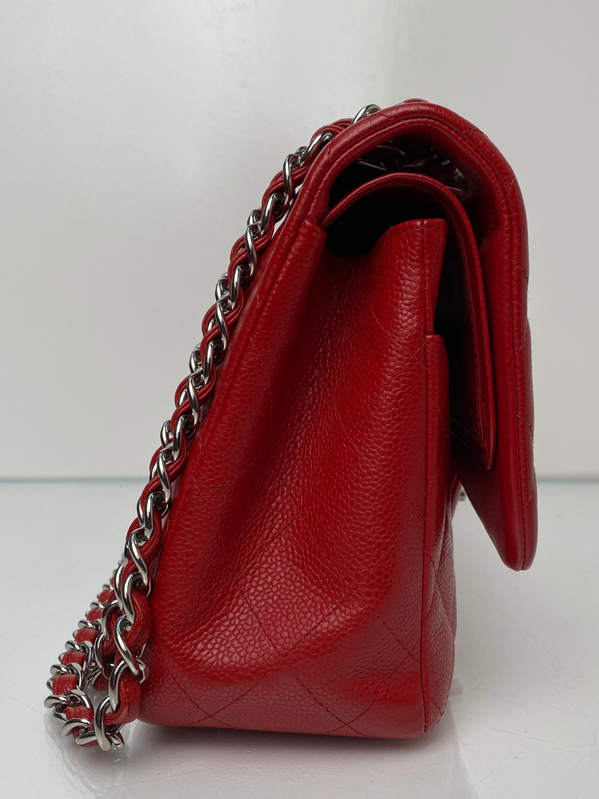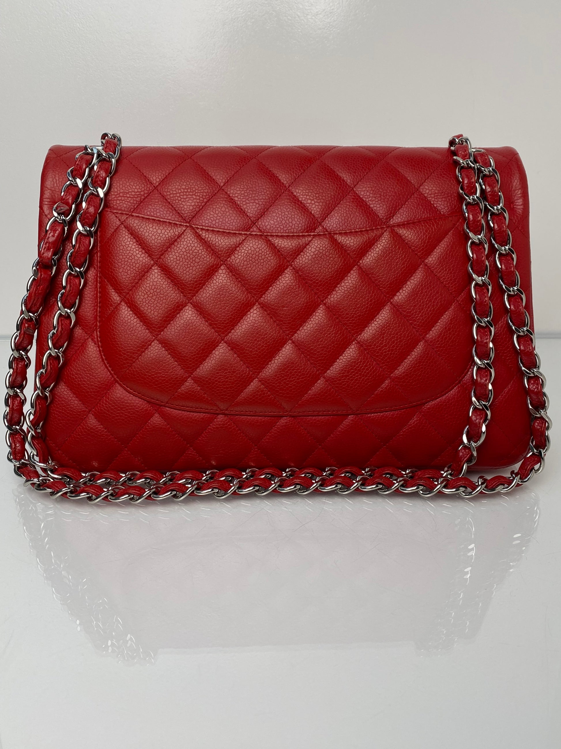 Chanel Red Caviar Quilted Jumbo Double Flap Bag SHW #19