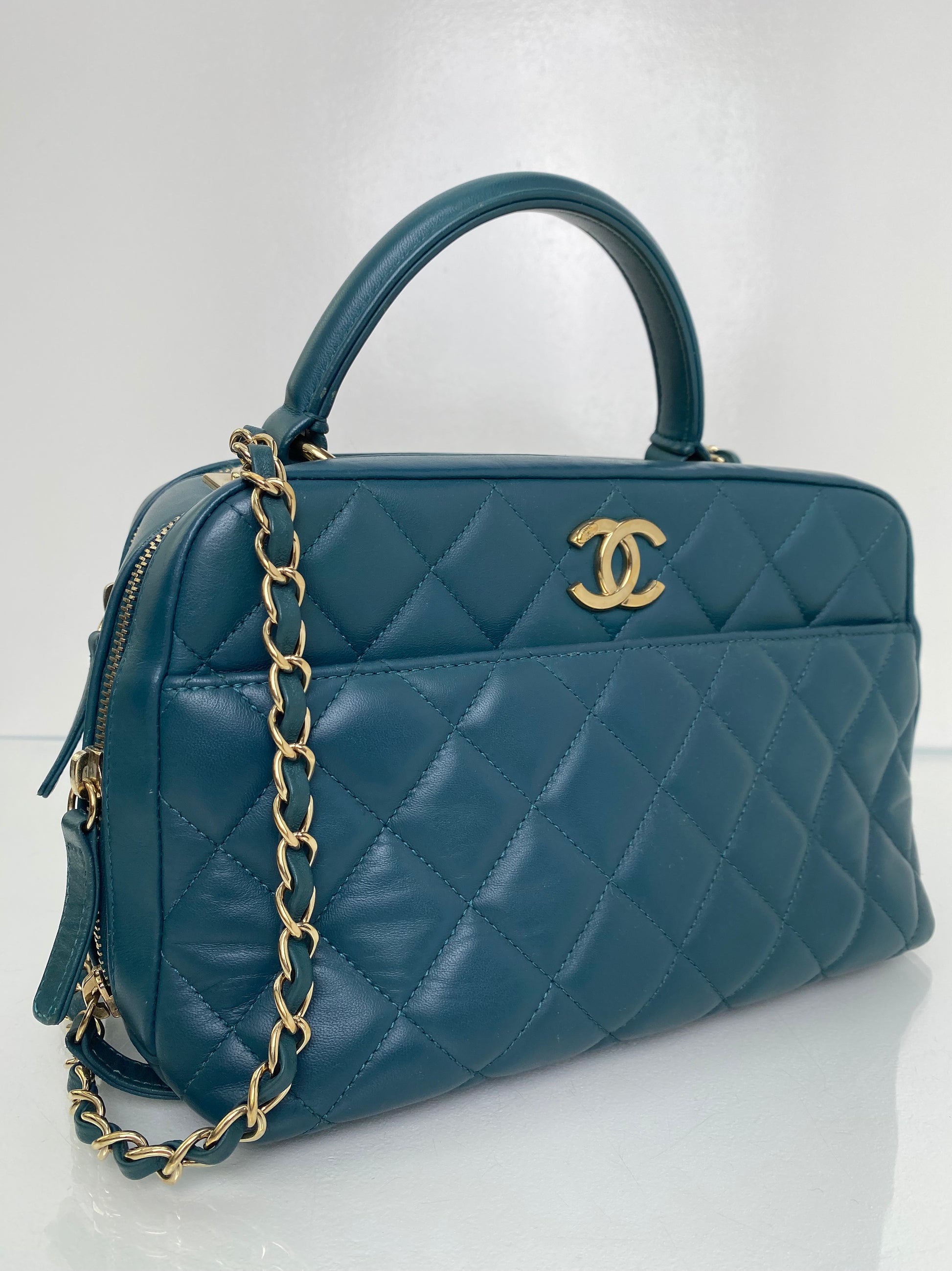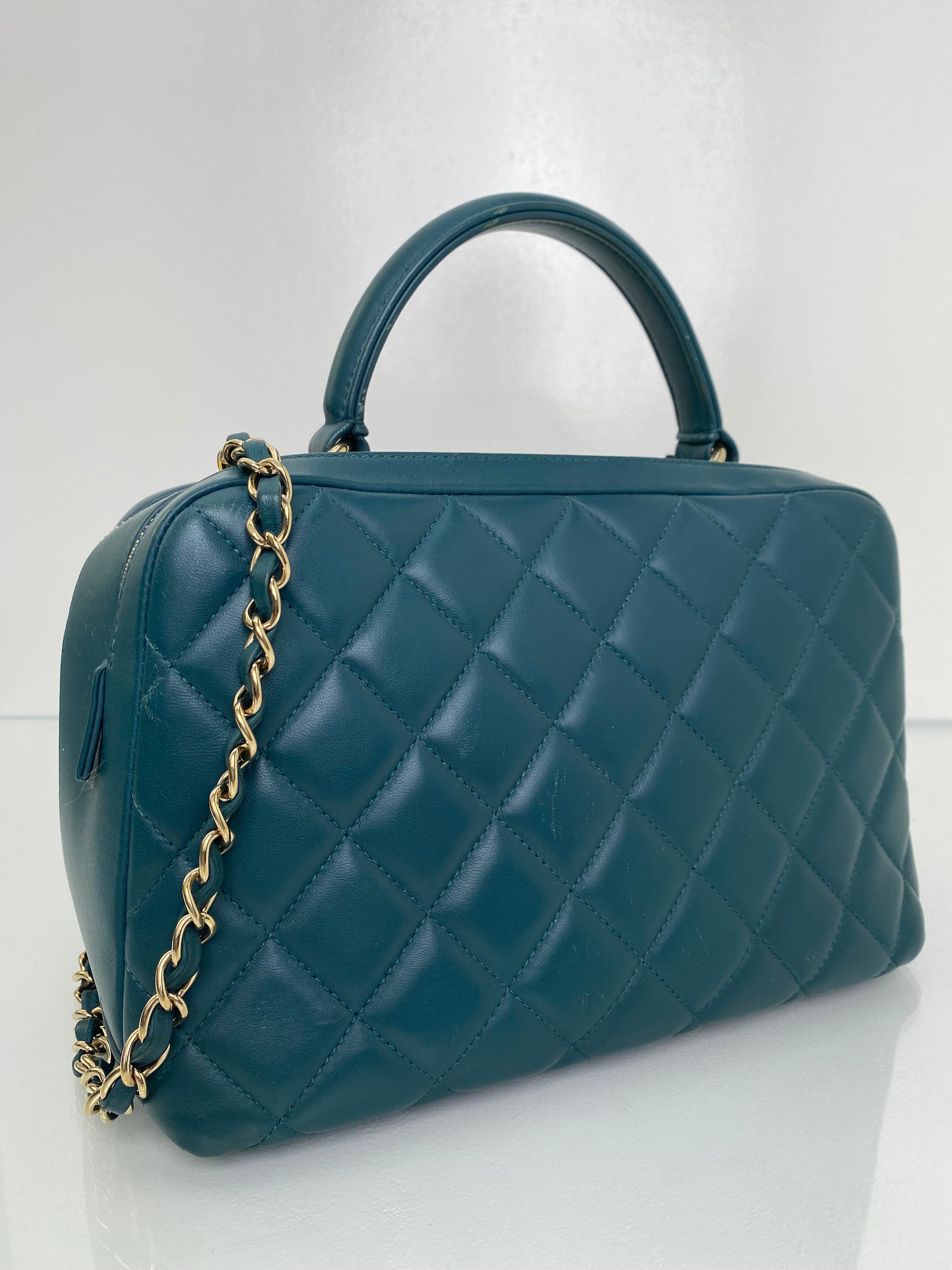 Chanel Teal Lambskin Medium Bowling Trendy Bag GHW #20