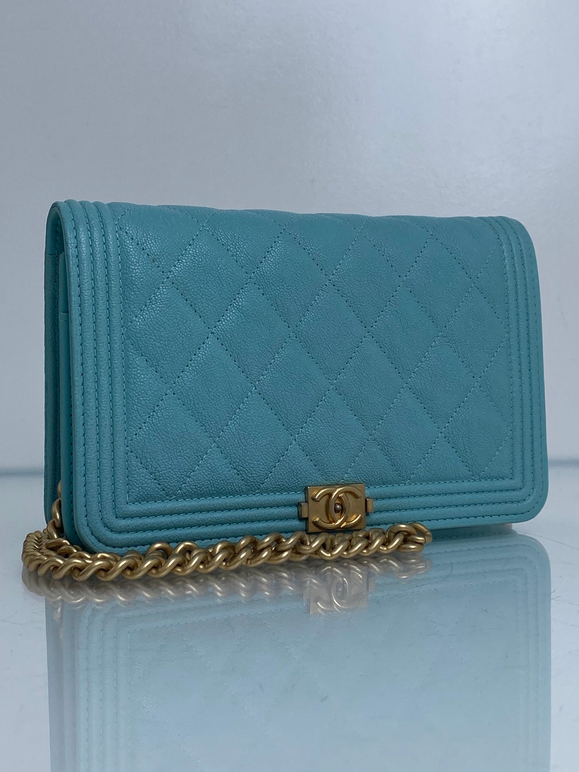 Chanel Tiffany Blue Caviar Boy Wallet on Chain GHW