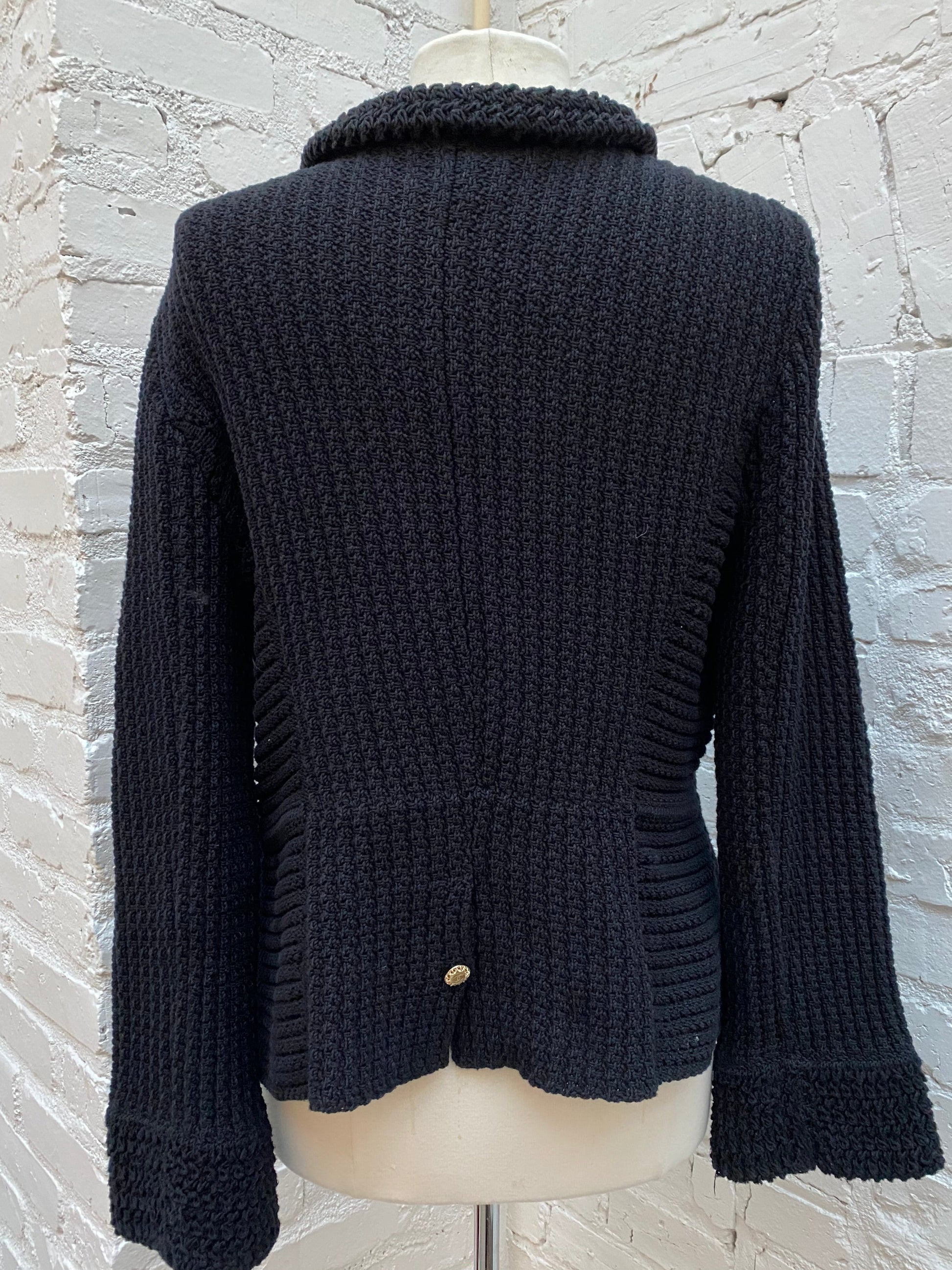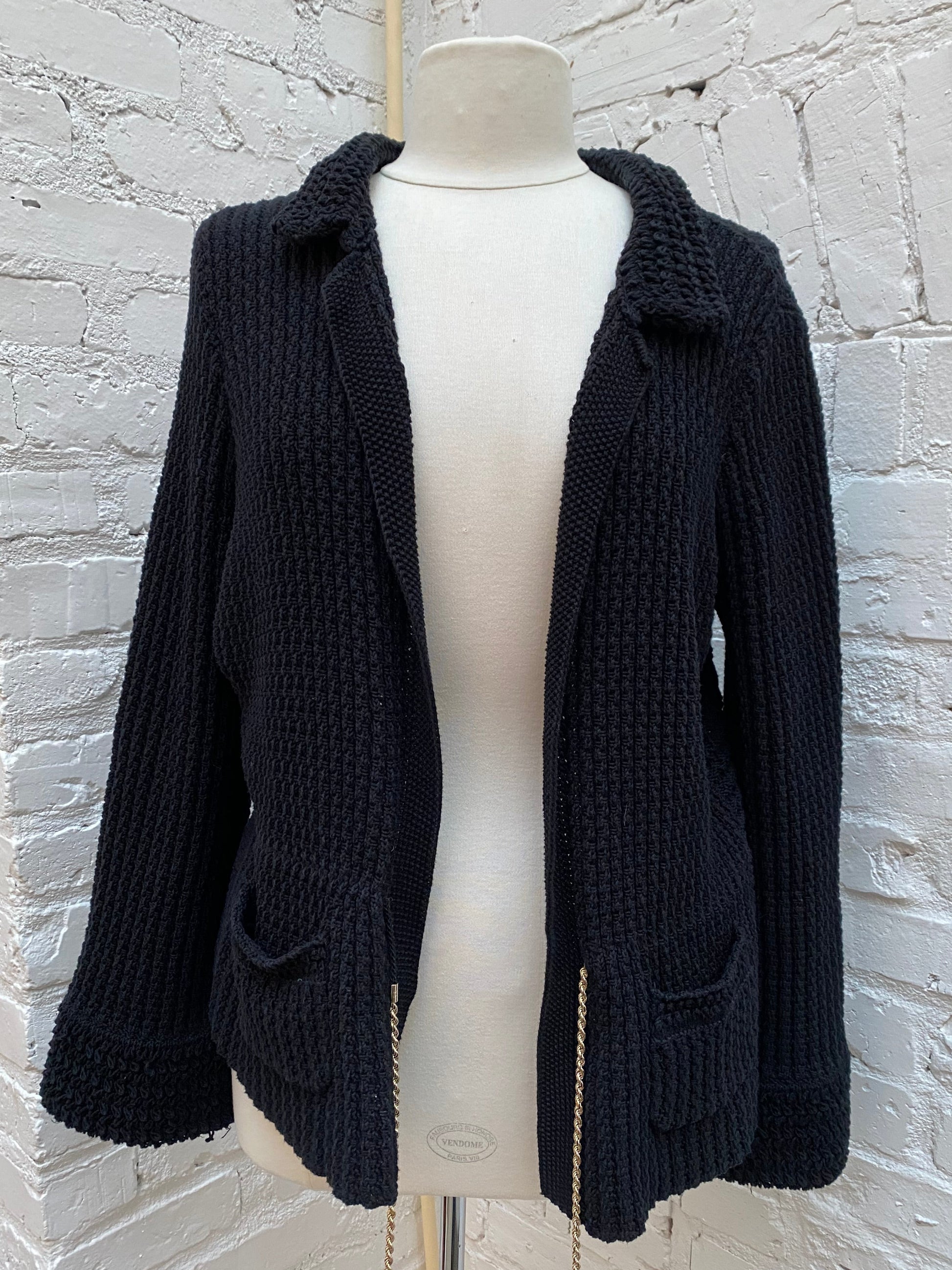 Chanel Vintage Black Knit & Gold Chain Cardigan, 42