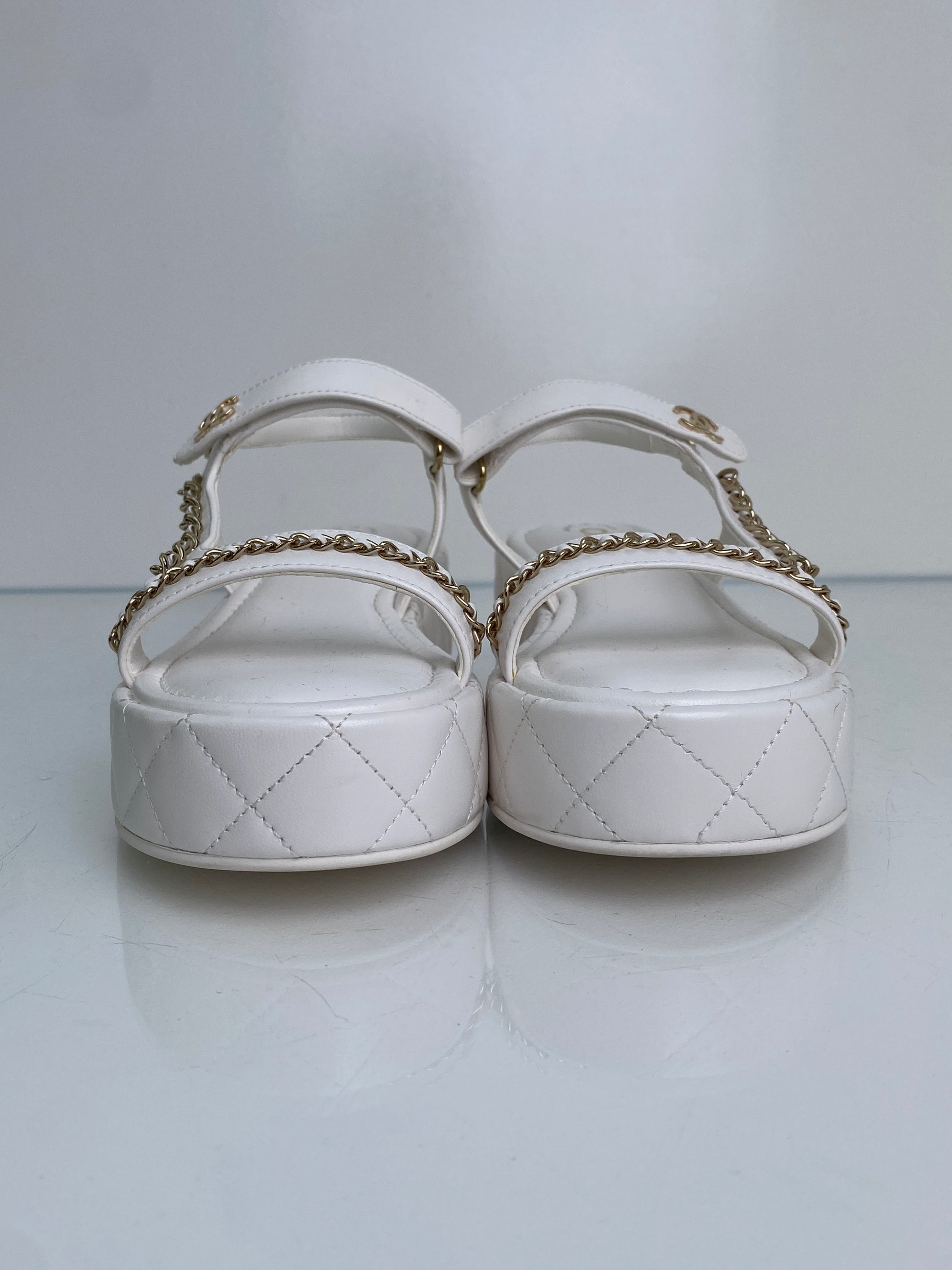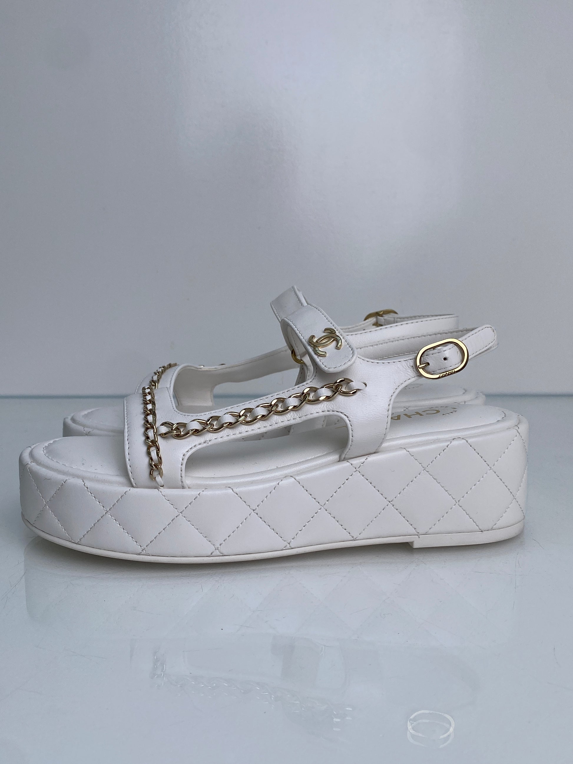 Chanel White CC Chain Platform Sandals, 38.5