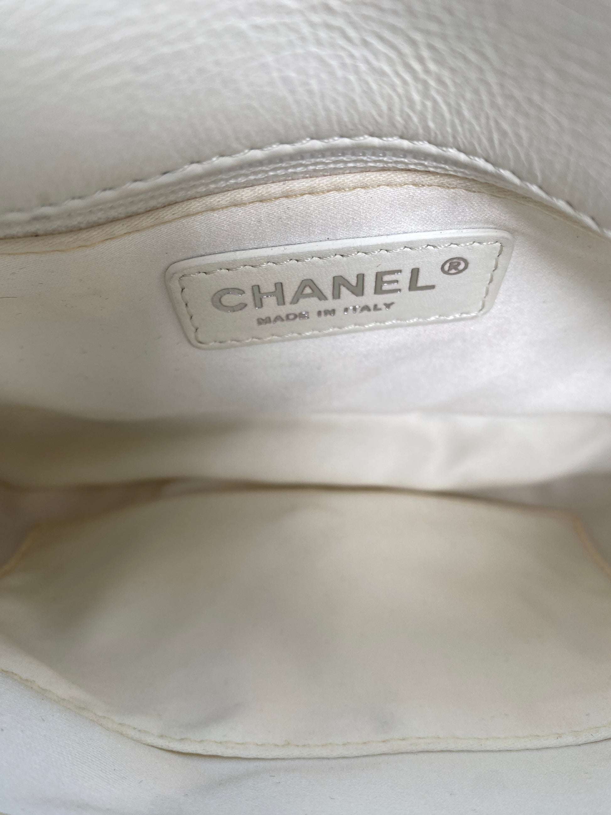 Chanel White Lambskin Quilted 3 Flap Bag SHW #19