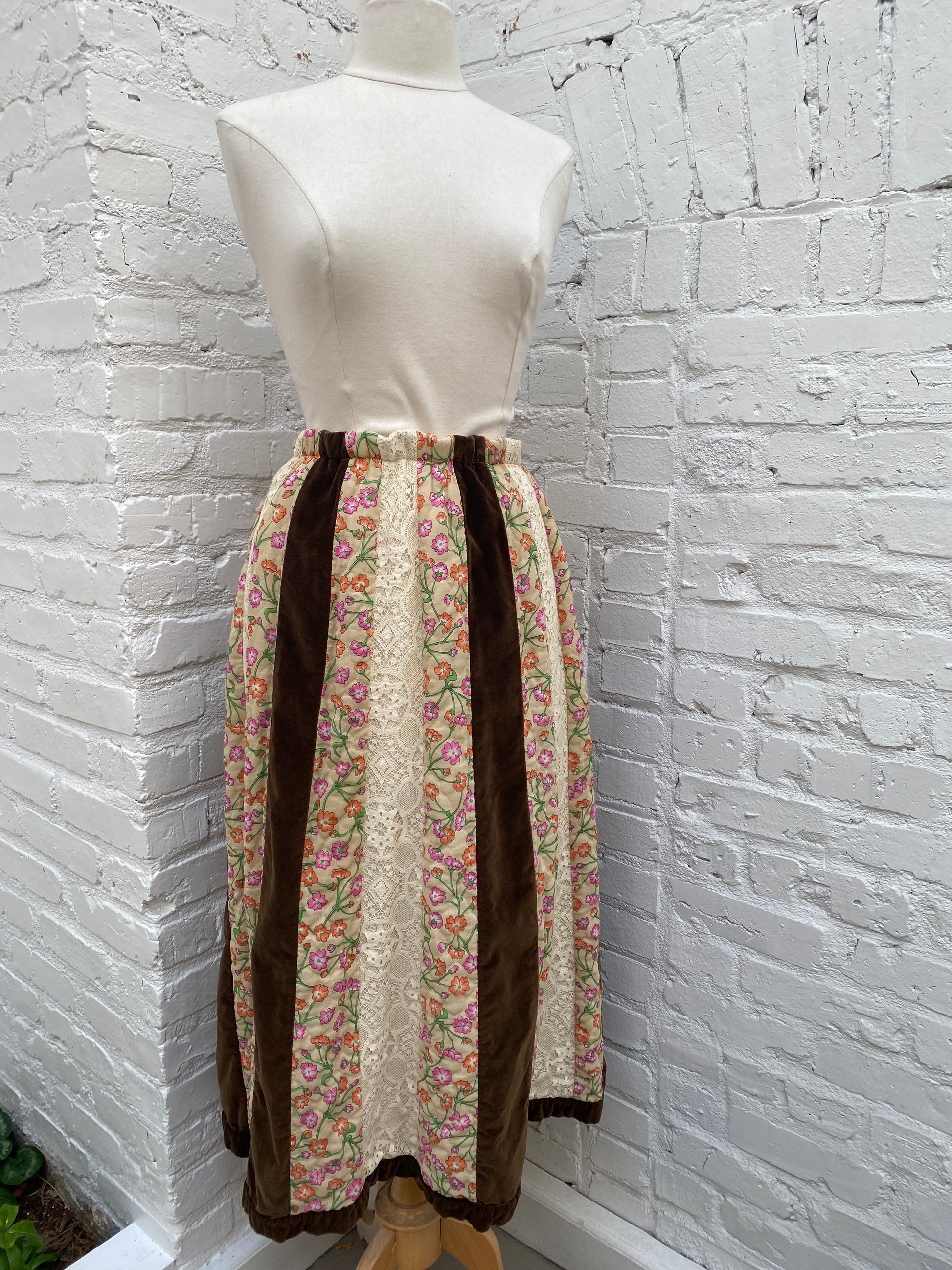 Chesa Daris Floral & Brown Suede Skirt