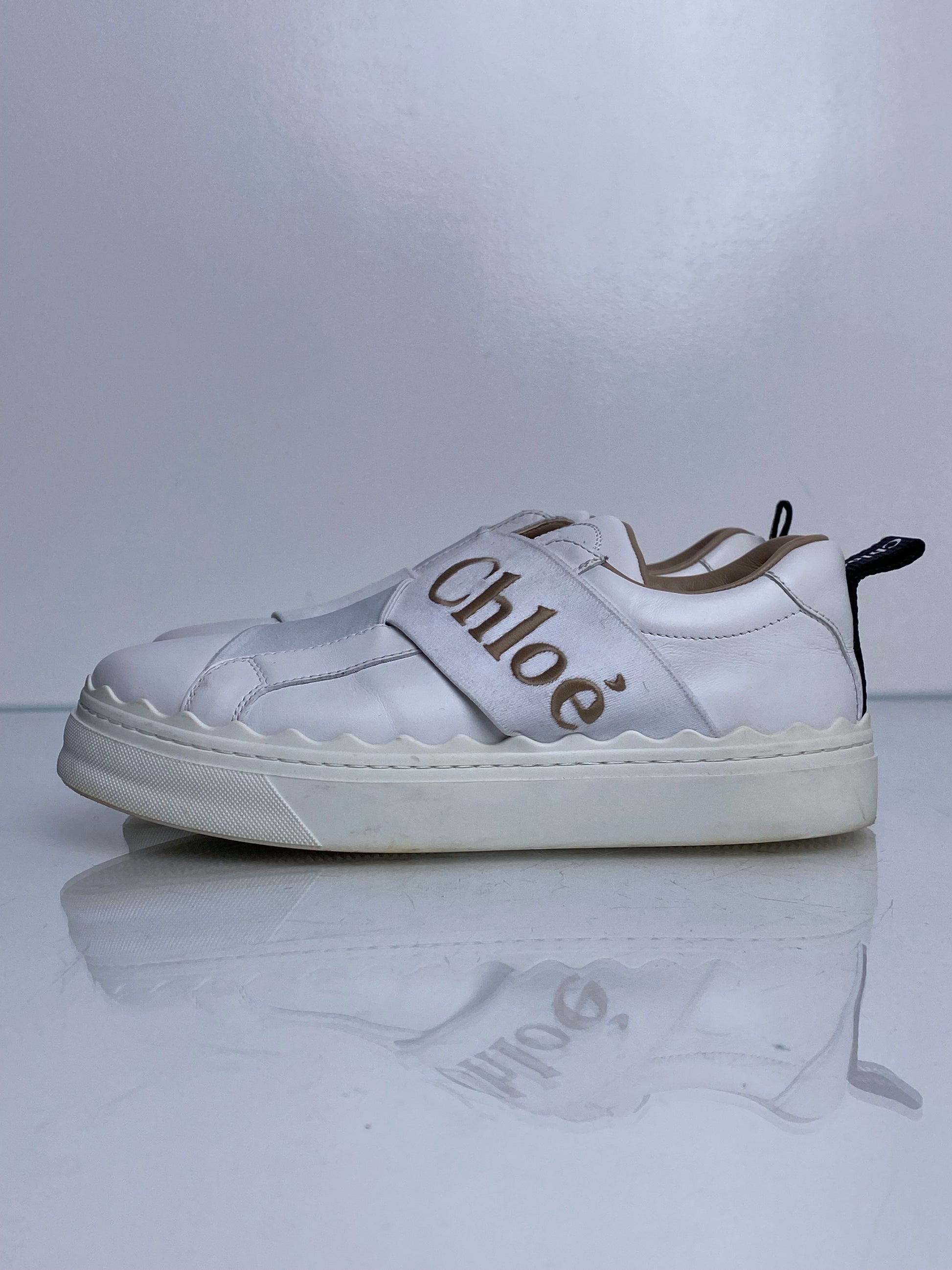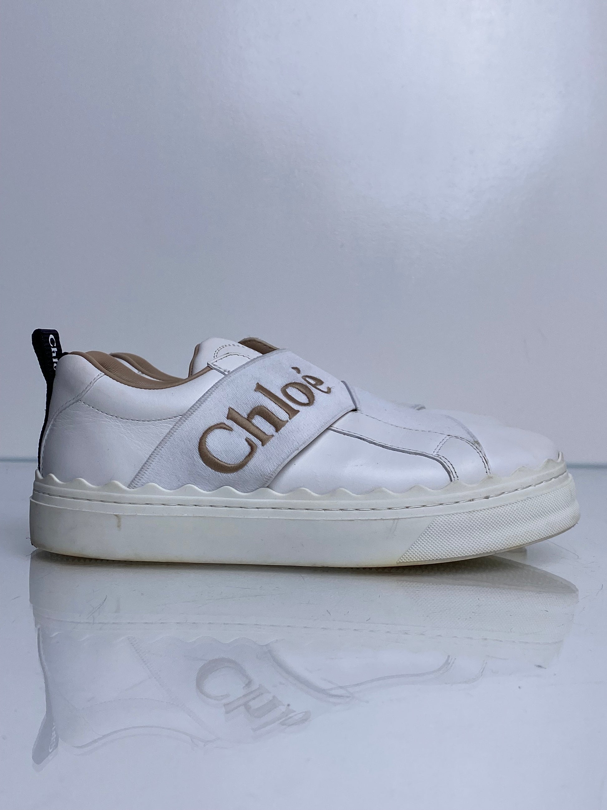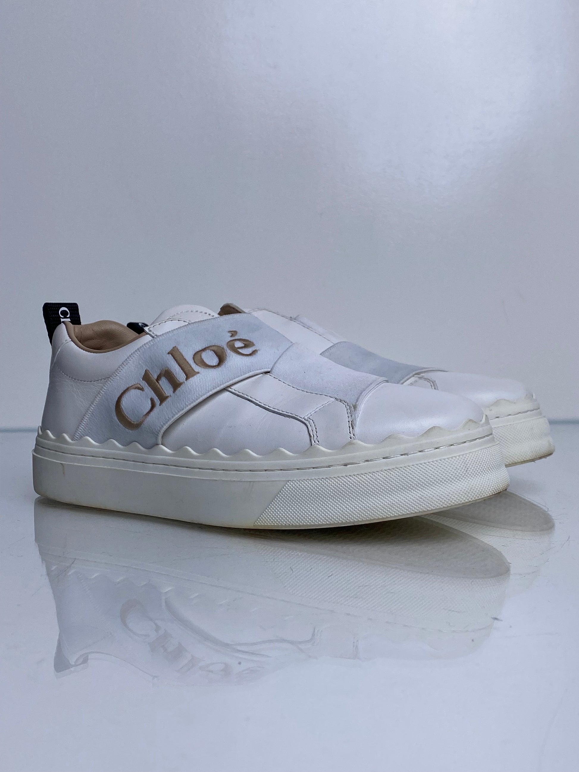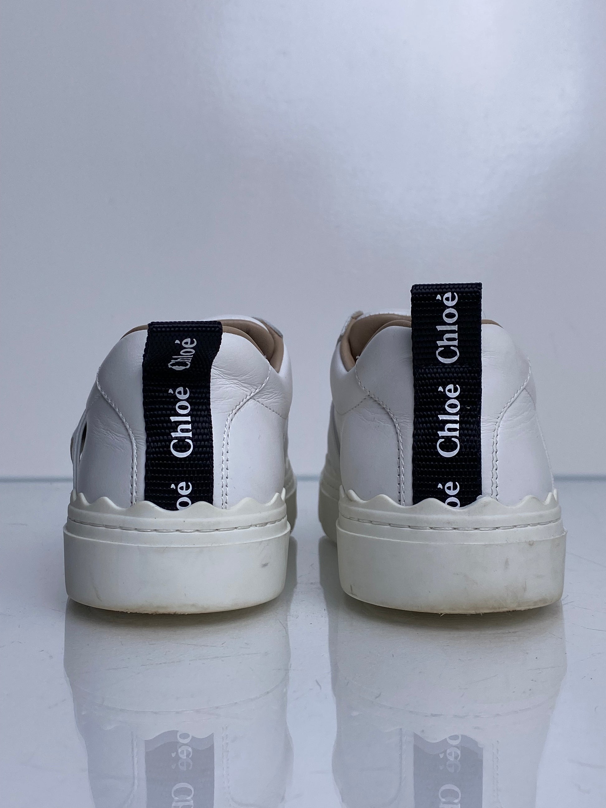 Chloe White Platform No Lace Sneakers, 35