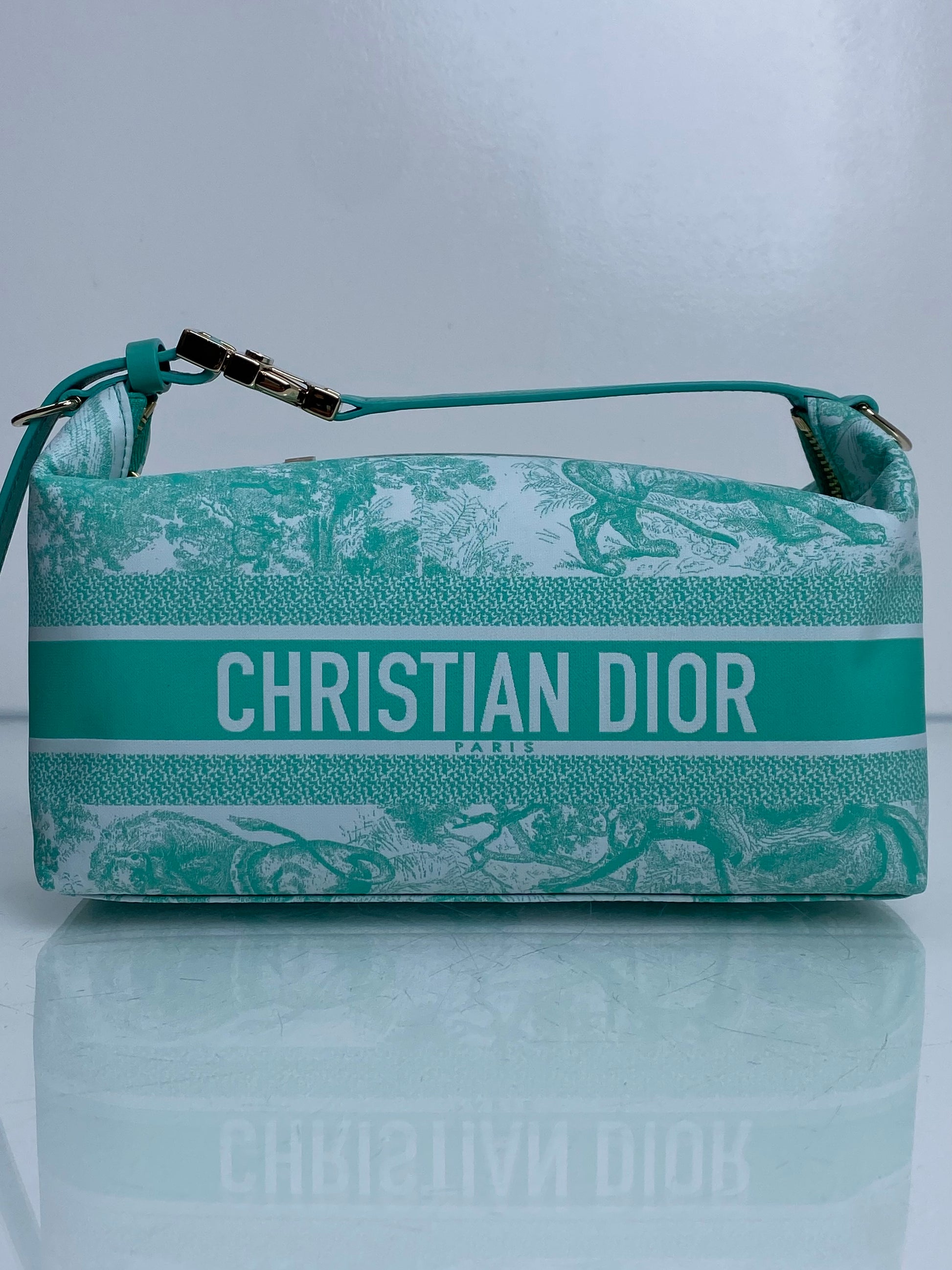 Christian Dior Teal & White Toile De Jouy Nomad Pouch GHW