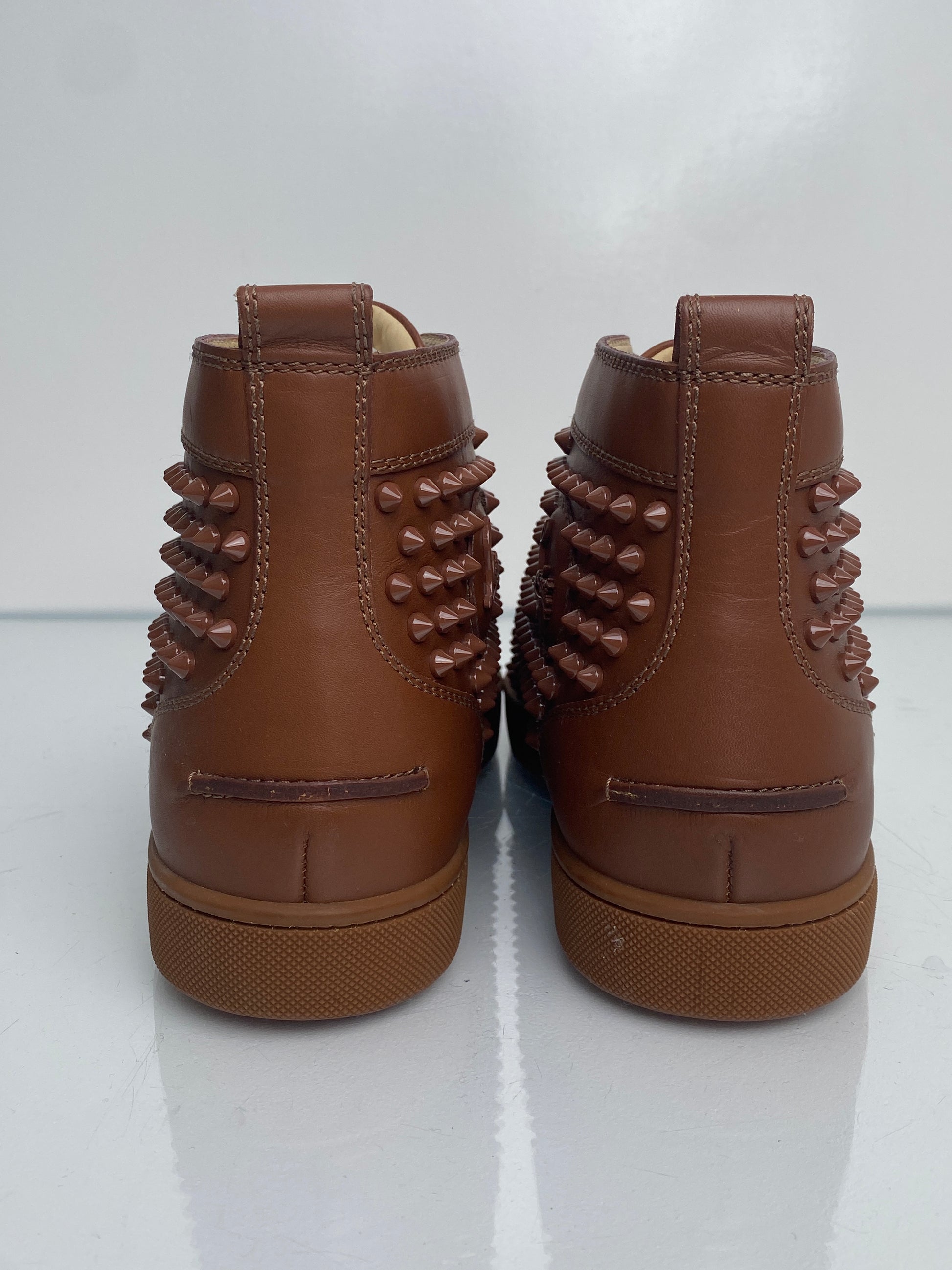 Christian Louboutin Brown Leather Spiked High-Top Sneakers, 43