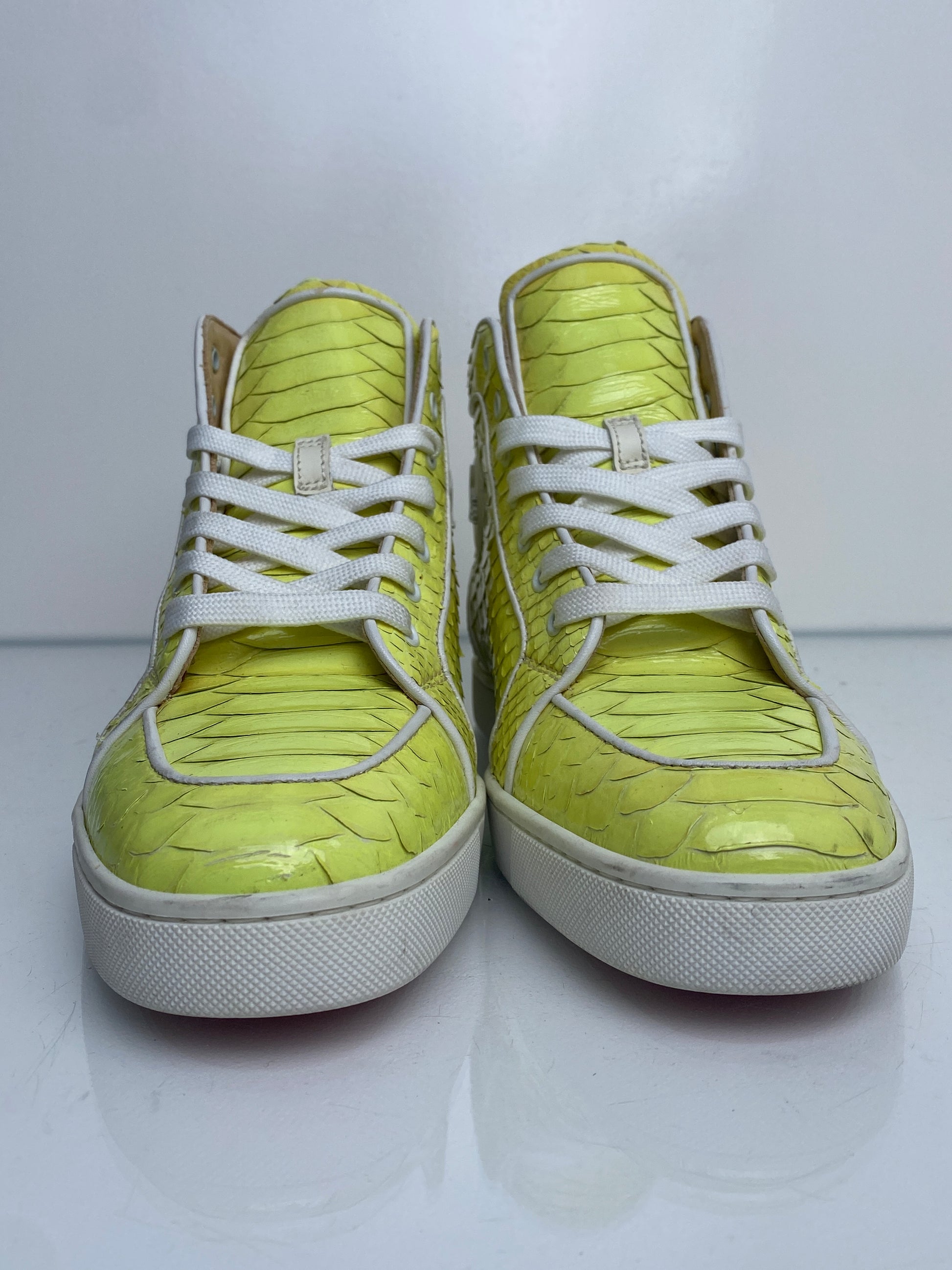 Christian Louboutin Yellow Python High-Top Sneakers, 43