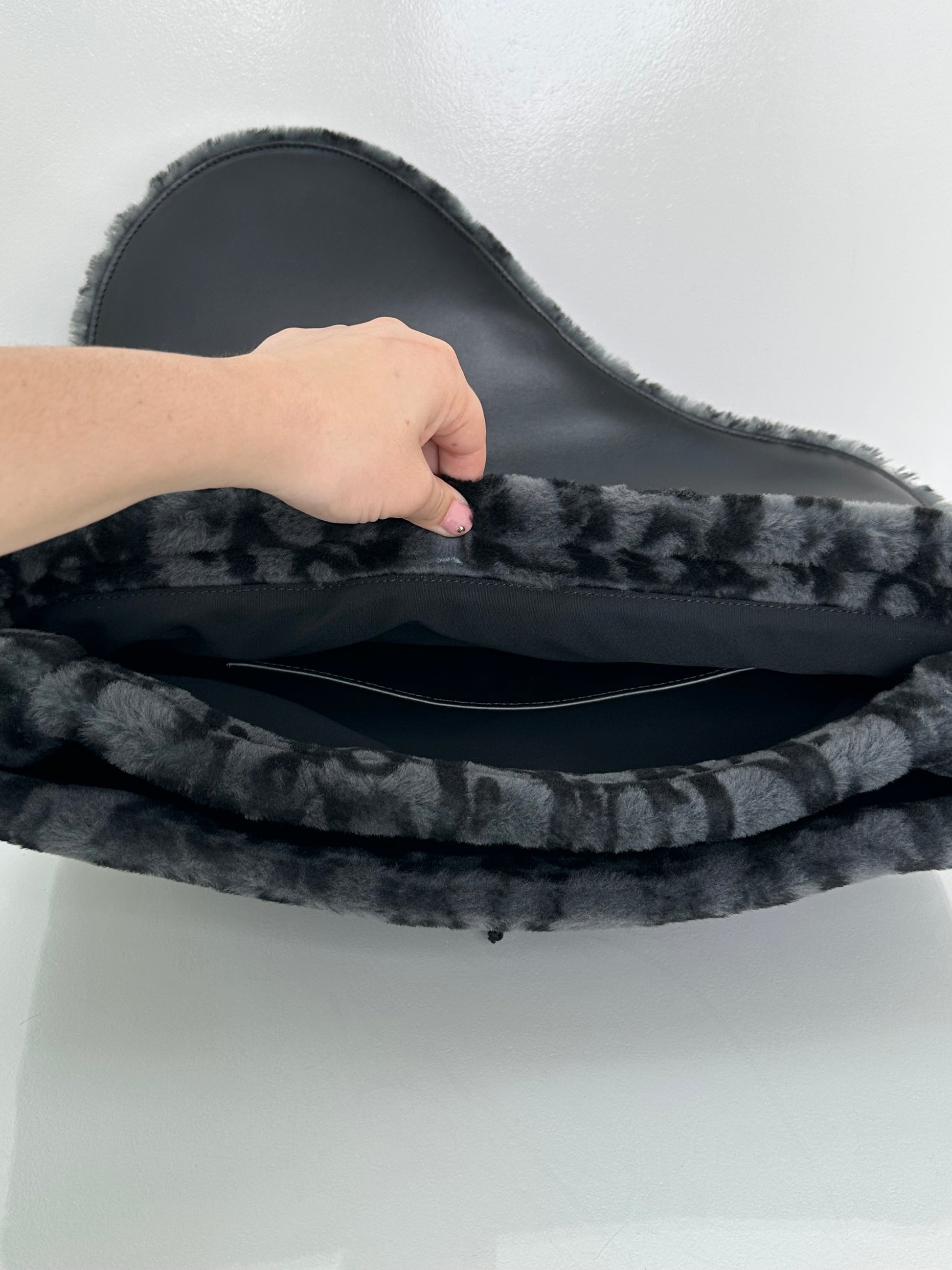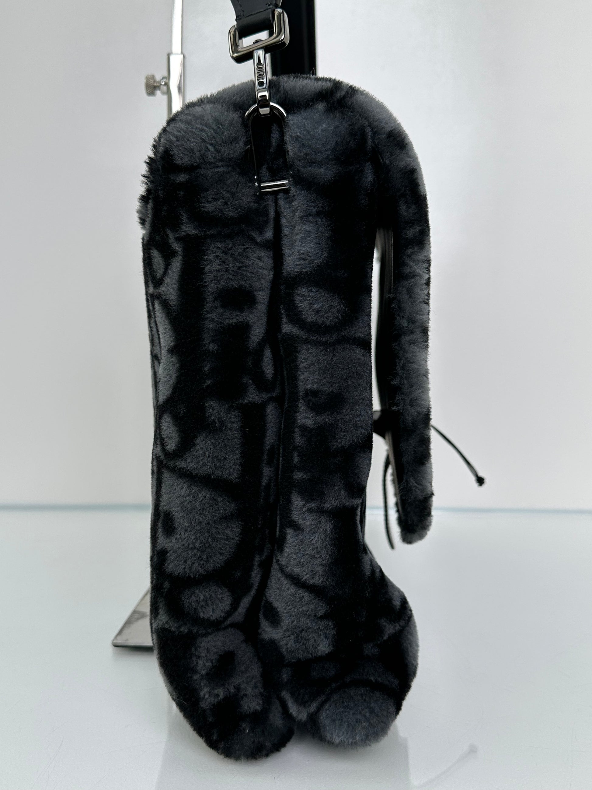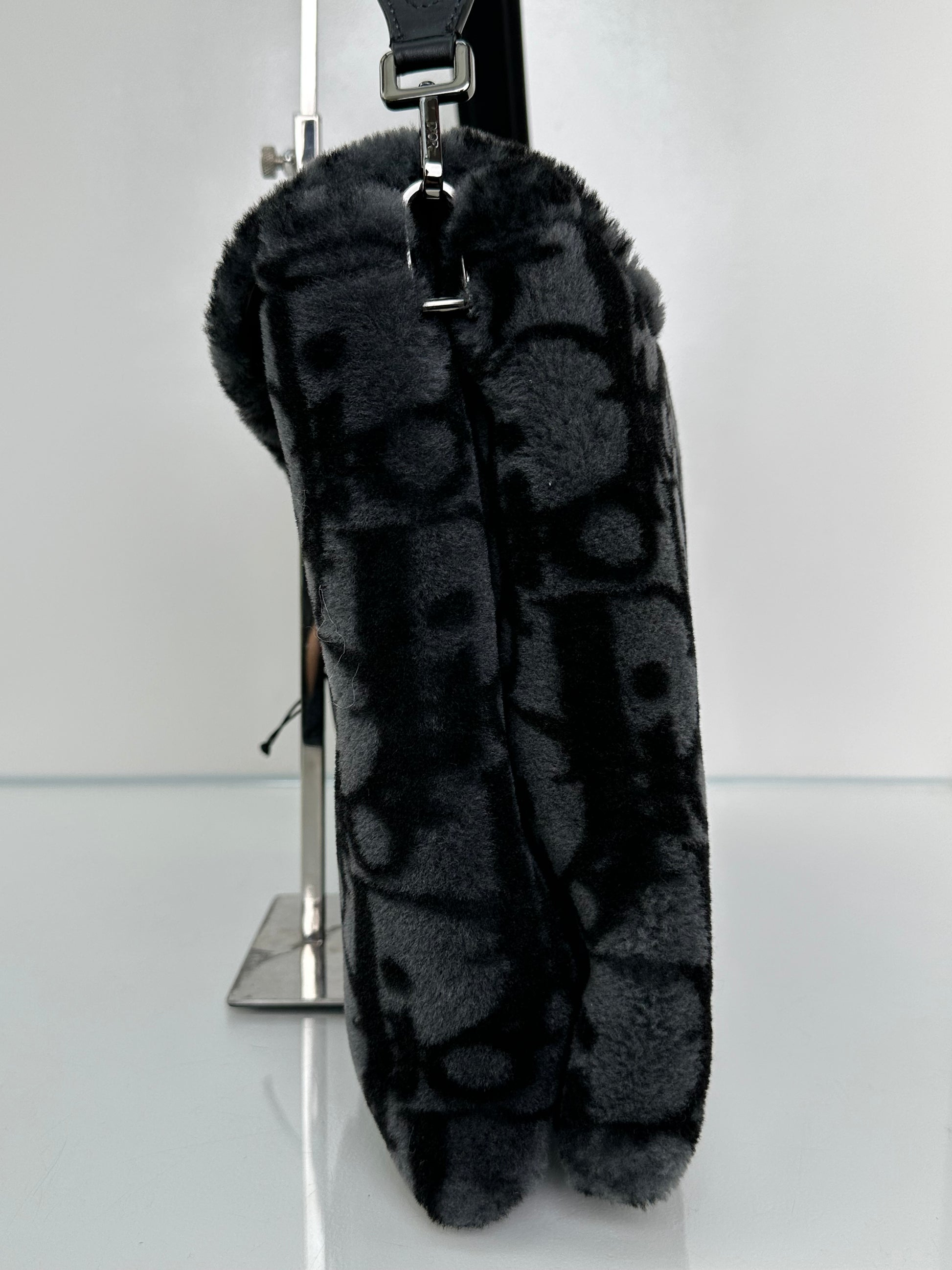 Dior Black & Dark Grey Oblique Shearling Saddle Briefcase Bag BHW