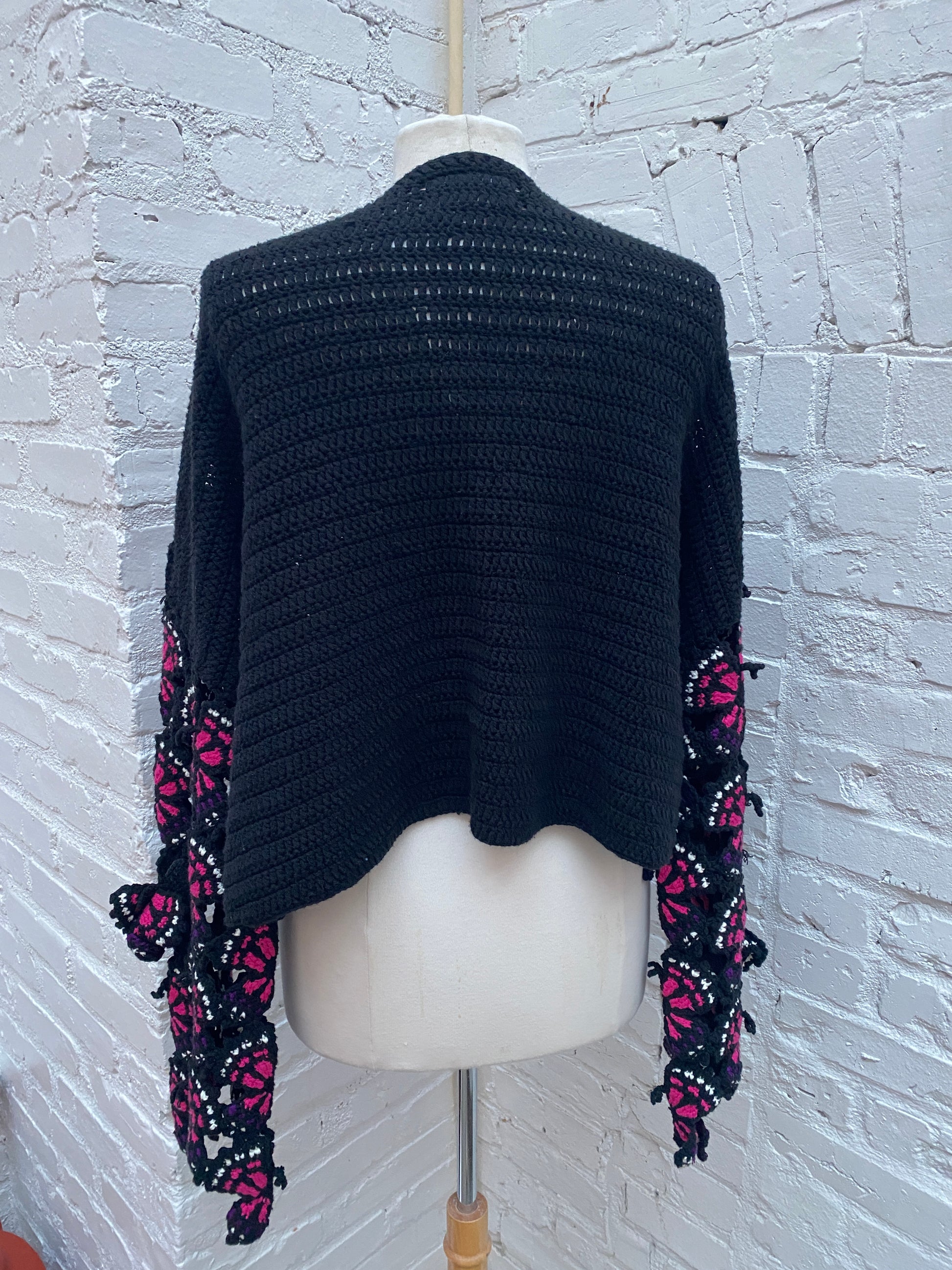Doublet Black, Pink, & Purple Hand Knit Crochet Butterfly Cardigan, OS