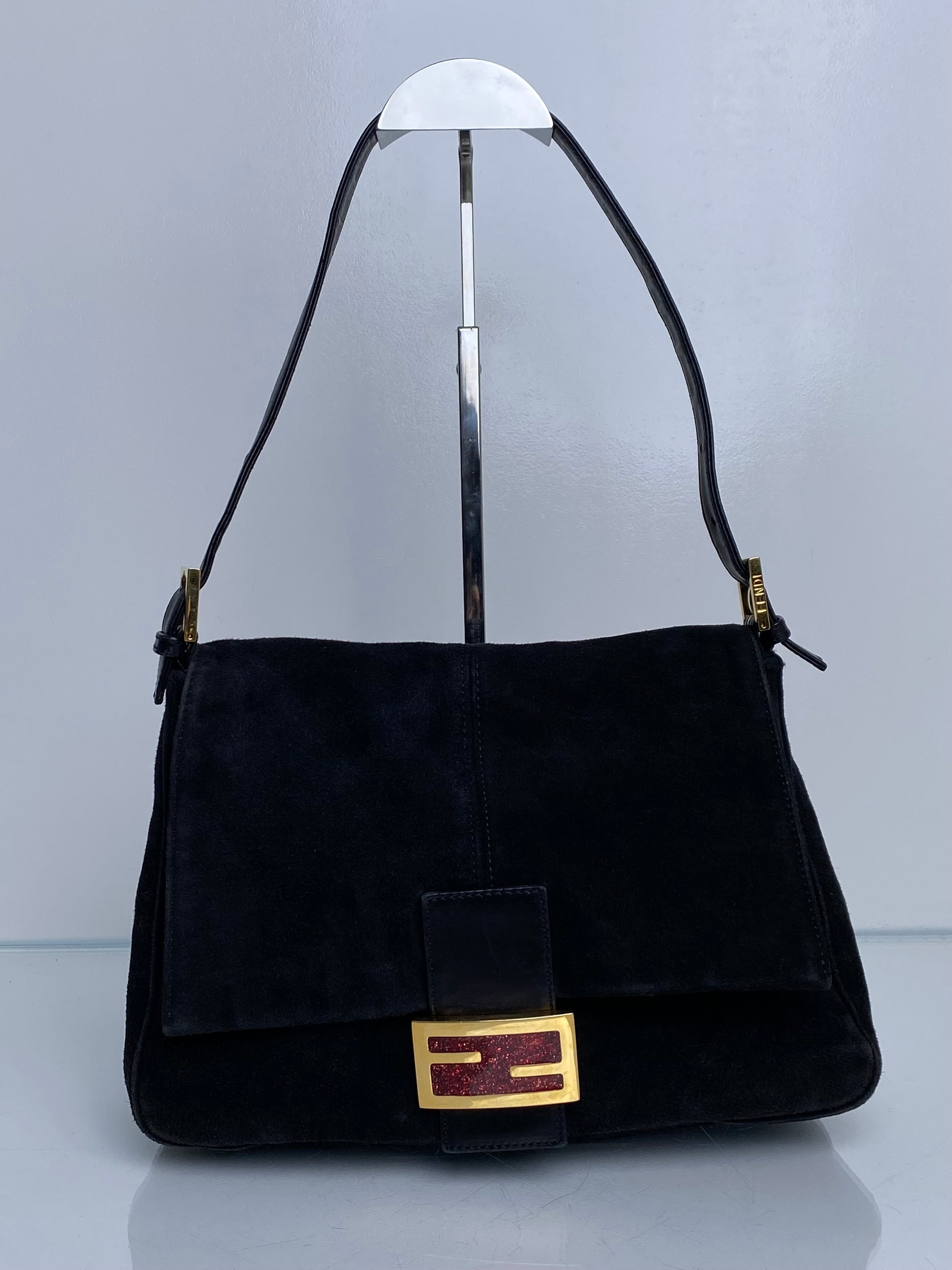 Fendi Black Suede Mama Baguette GHW