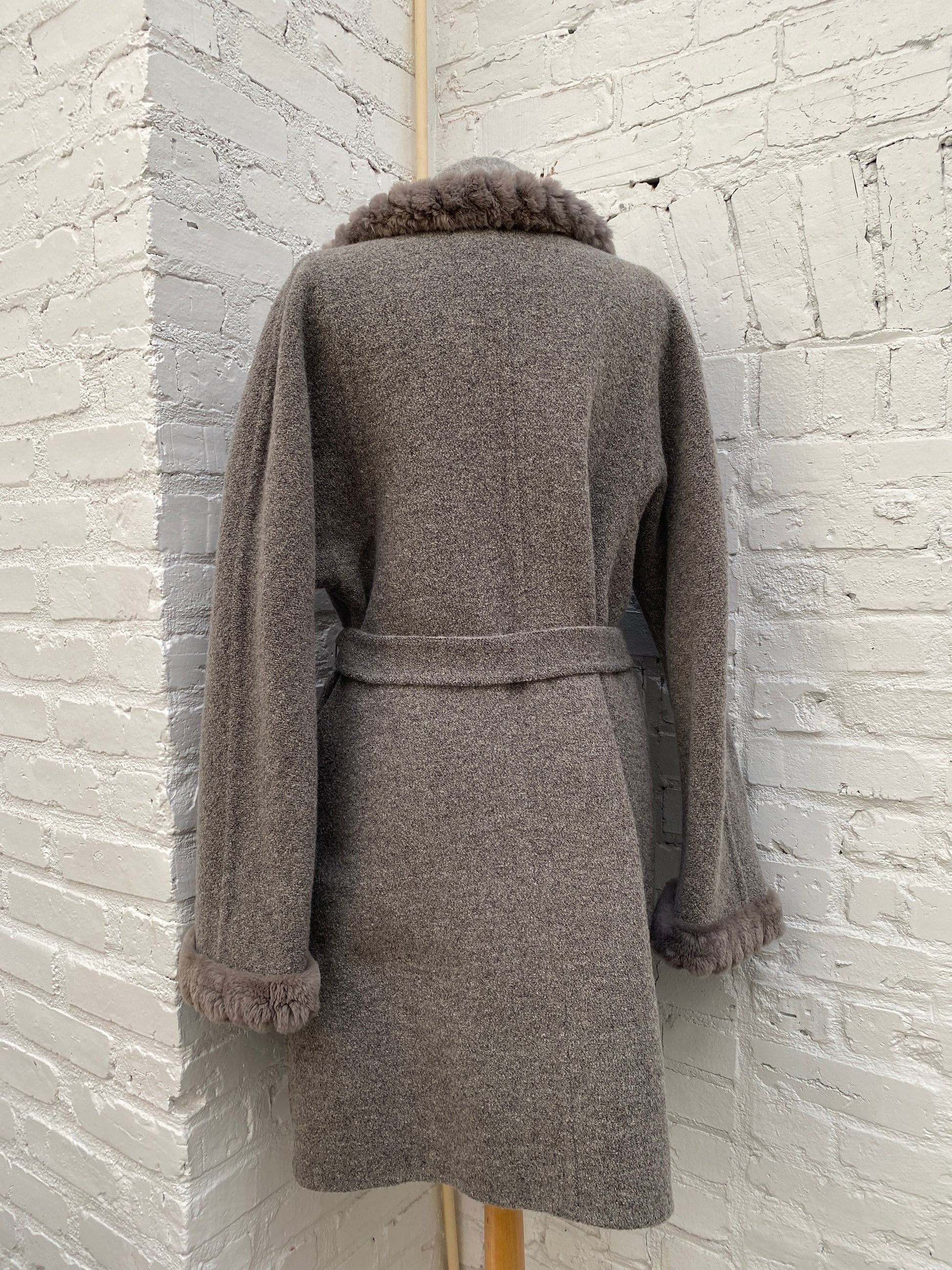 Fendi Vintage Grey Fur Trim Coat, 8, As is