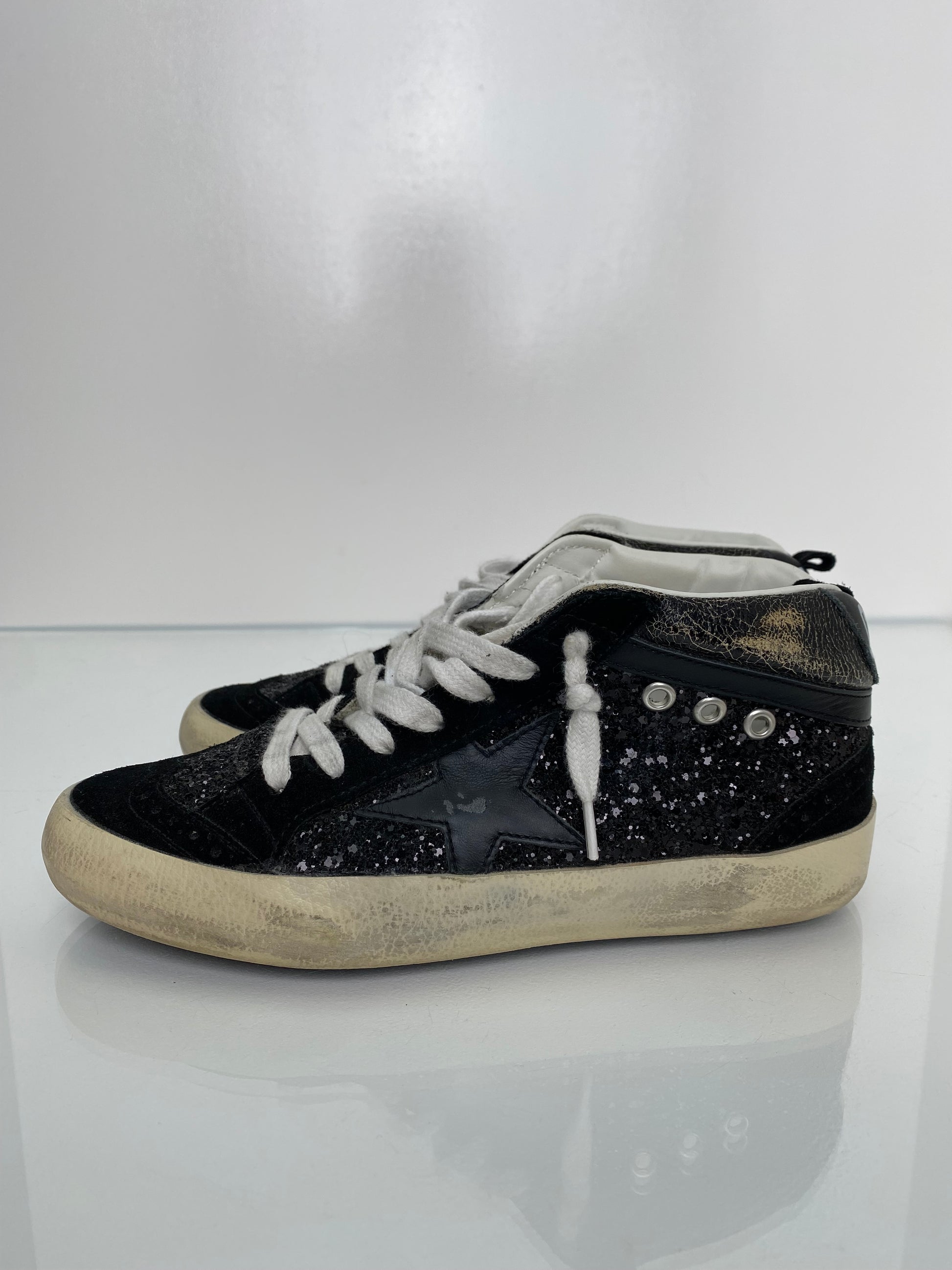 Golden Goose Black Sparkle High-Top Sneakers, 36