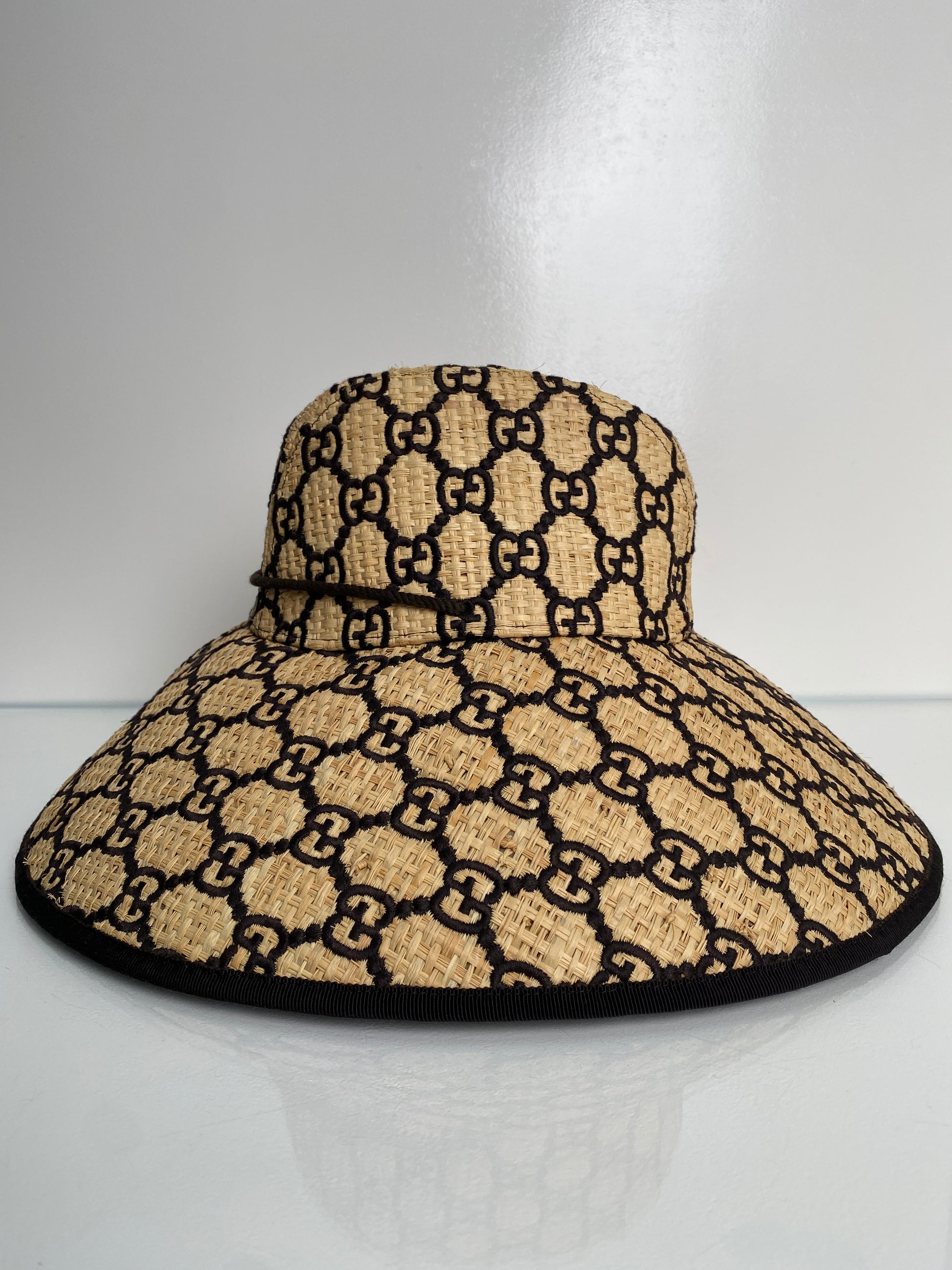 Gucci Brown & Tan Raffia GG Wide Brim Hat