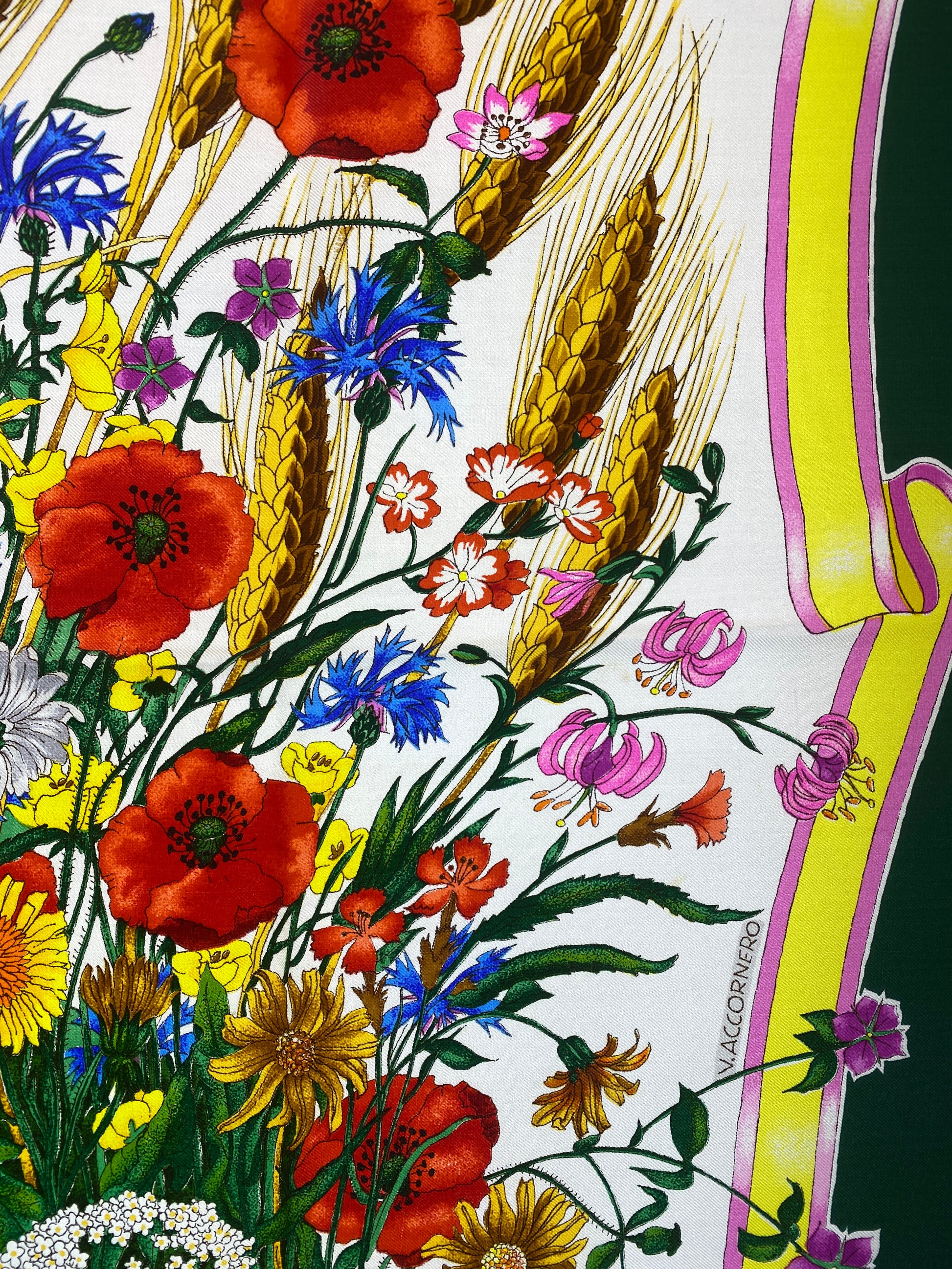 Gucci Cream, Green, & Red Poppy Scarf