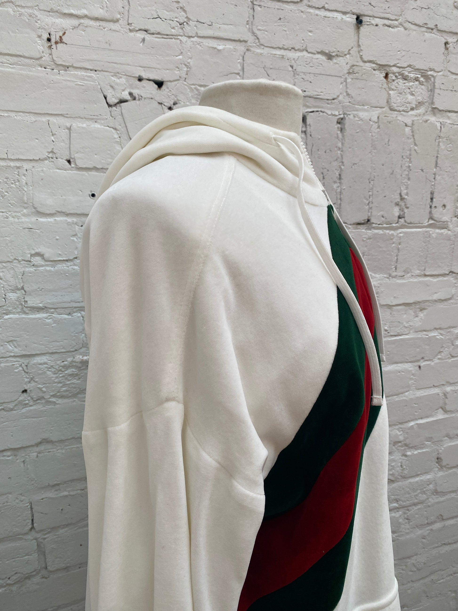 Gucci White & Webstripe Velvet Hoodie, S
